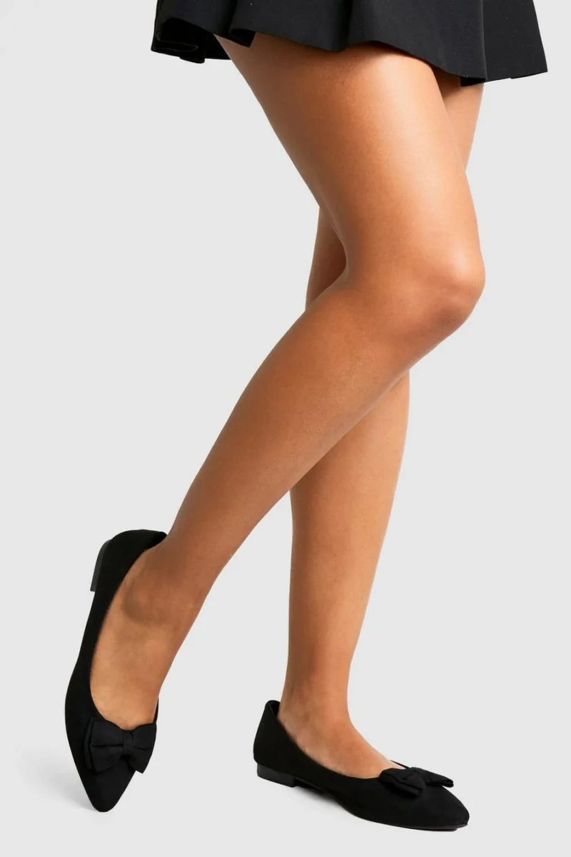 BOOHOO Wide Fit Bow Pointed Toe Ballerina