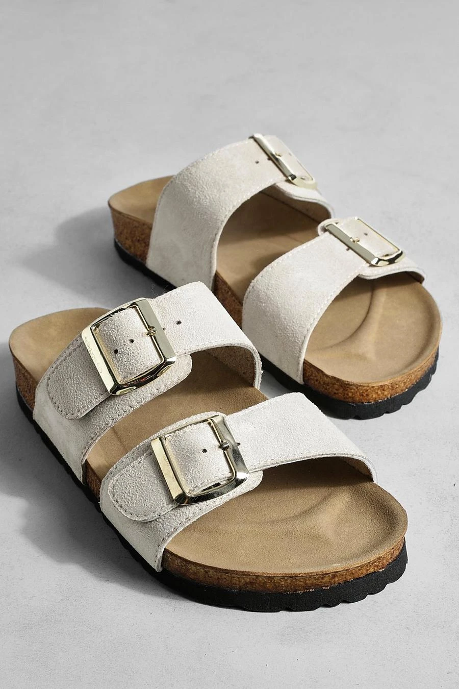 BOOHOO Wide Fit Buckle Strap Footbed Sliders