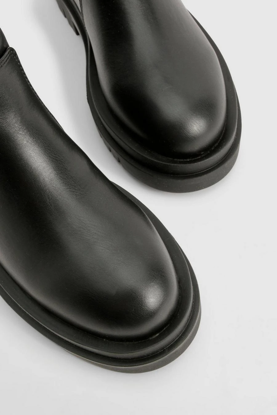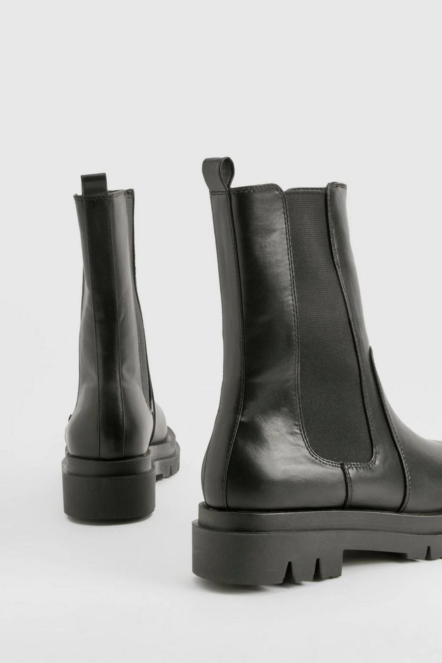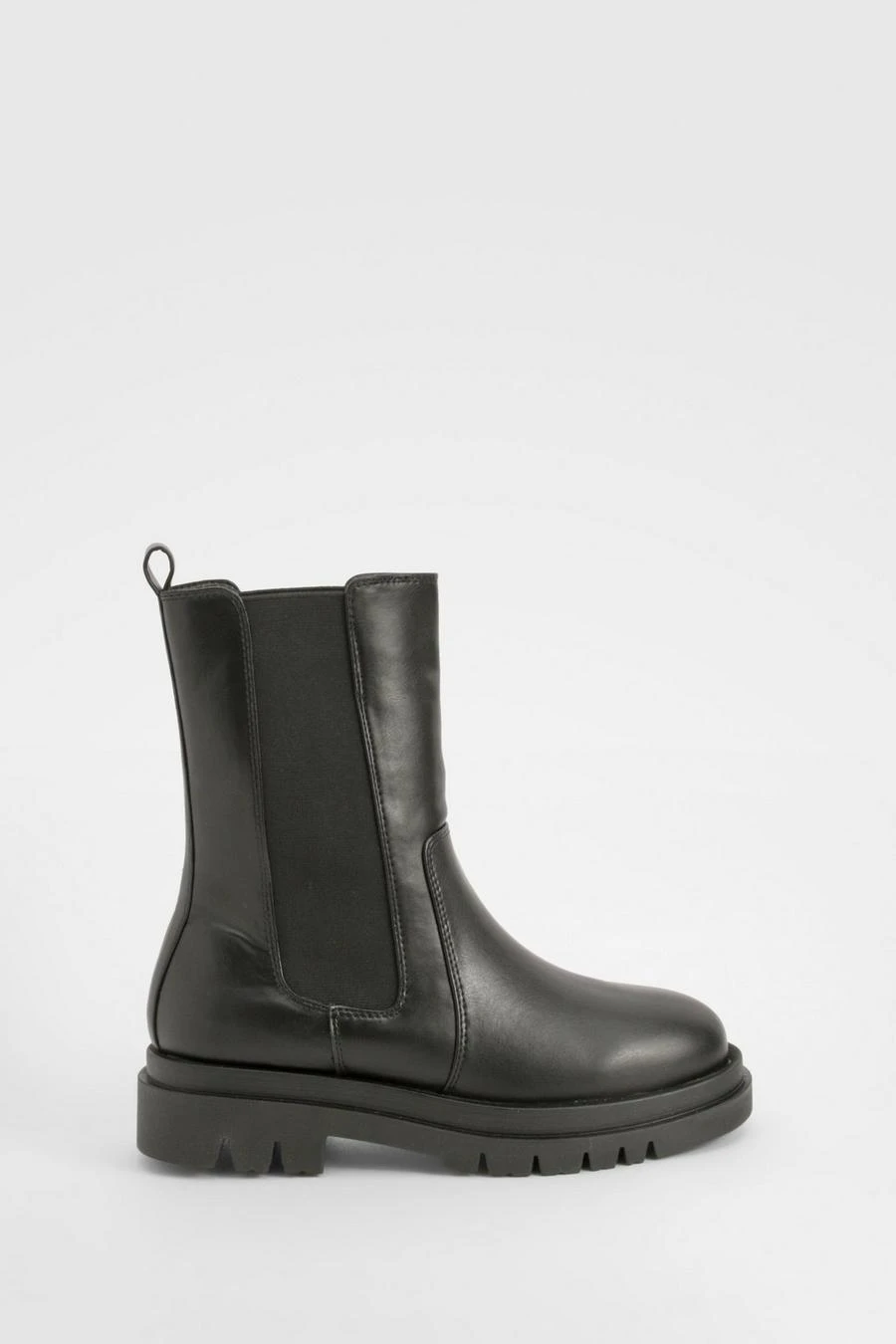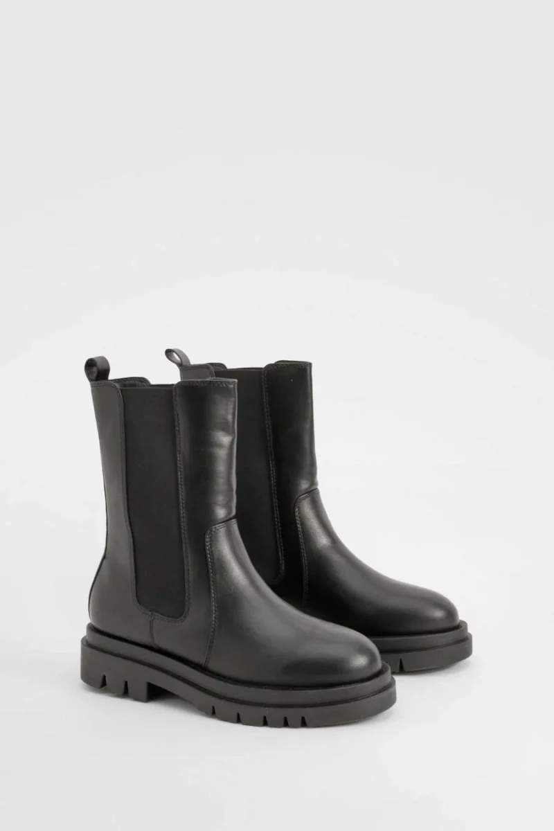 BOOHOO Wide Fit Calf High Chunky Sole Chelsea Boots