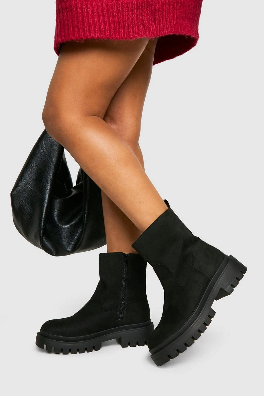 BOOHOO Wide Fit Chunky Panel Detail Chelsea Boots