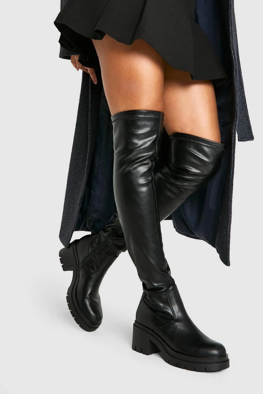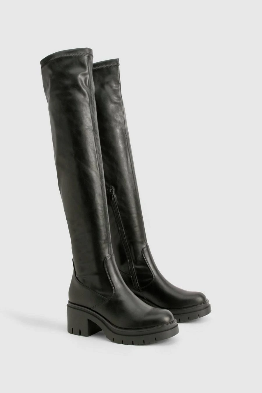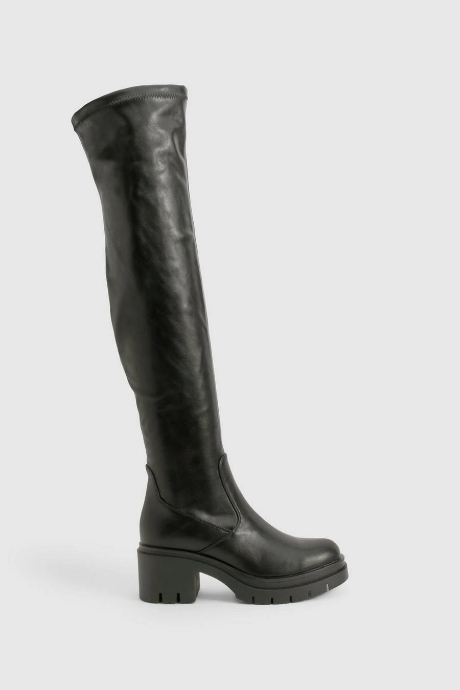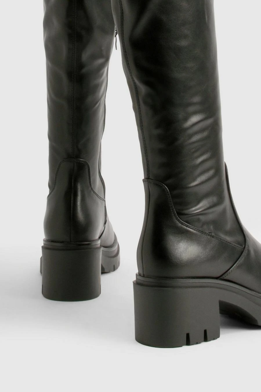 BOOHOO Wide Fit Cleated Over The Knee Pu Boots