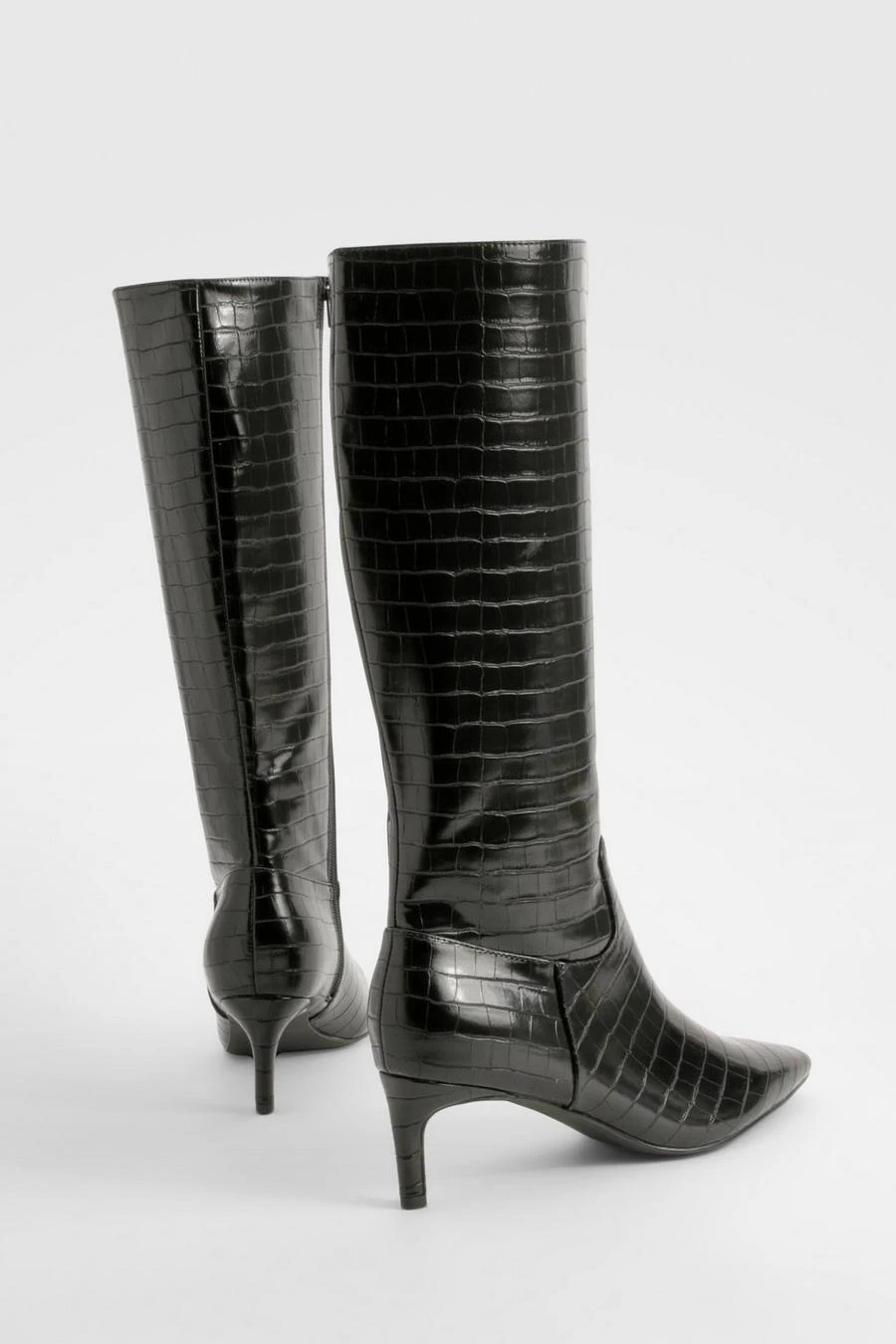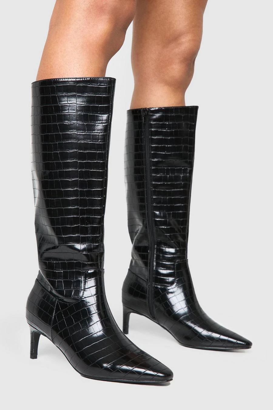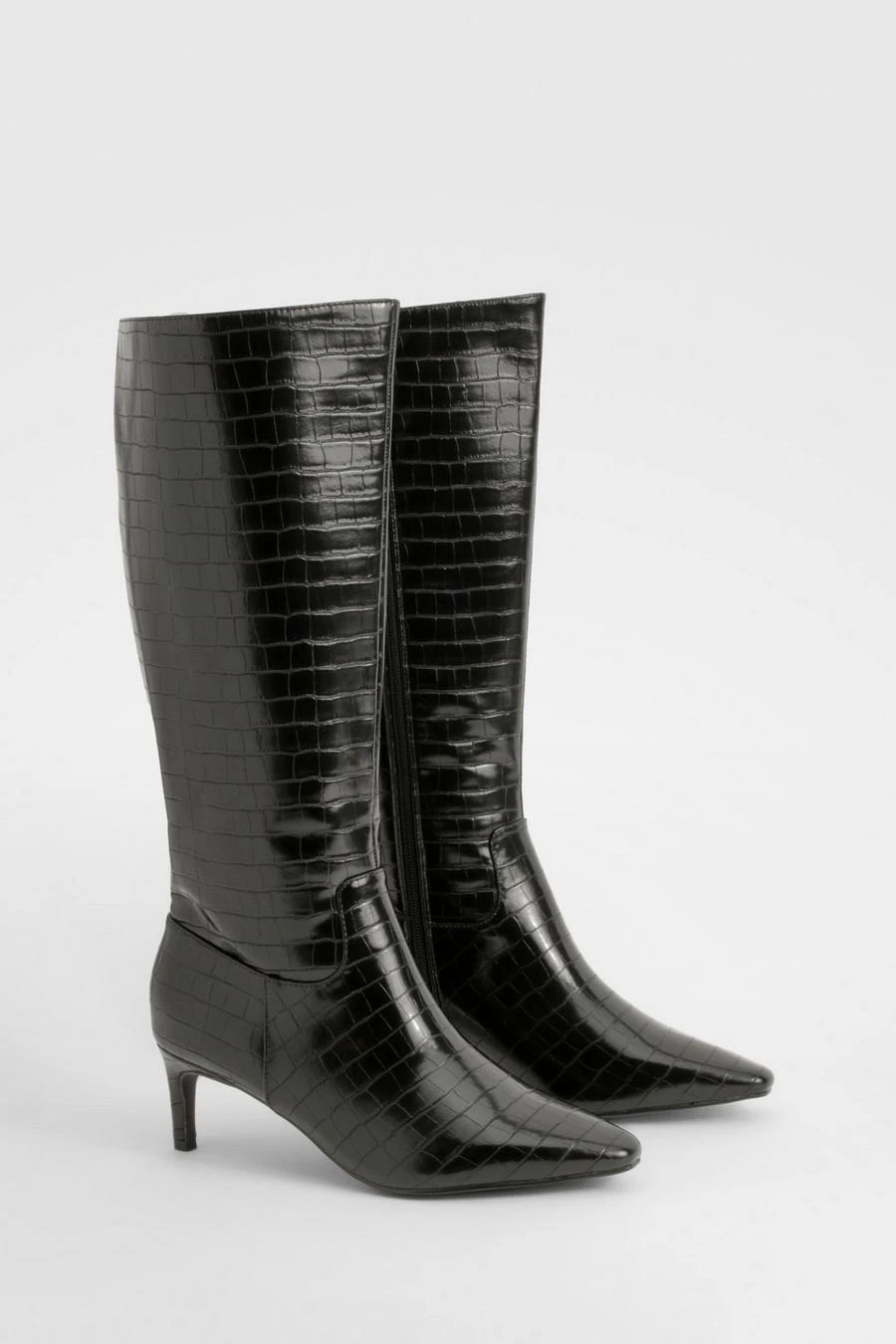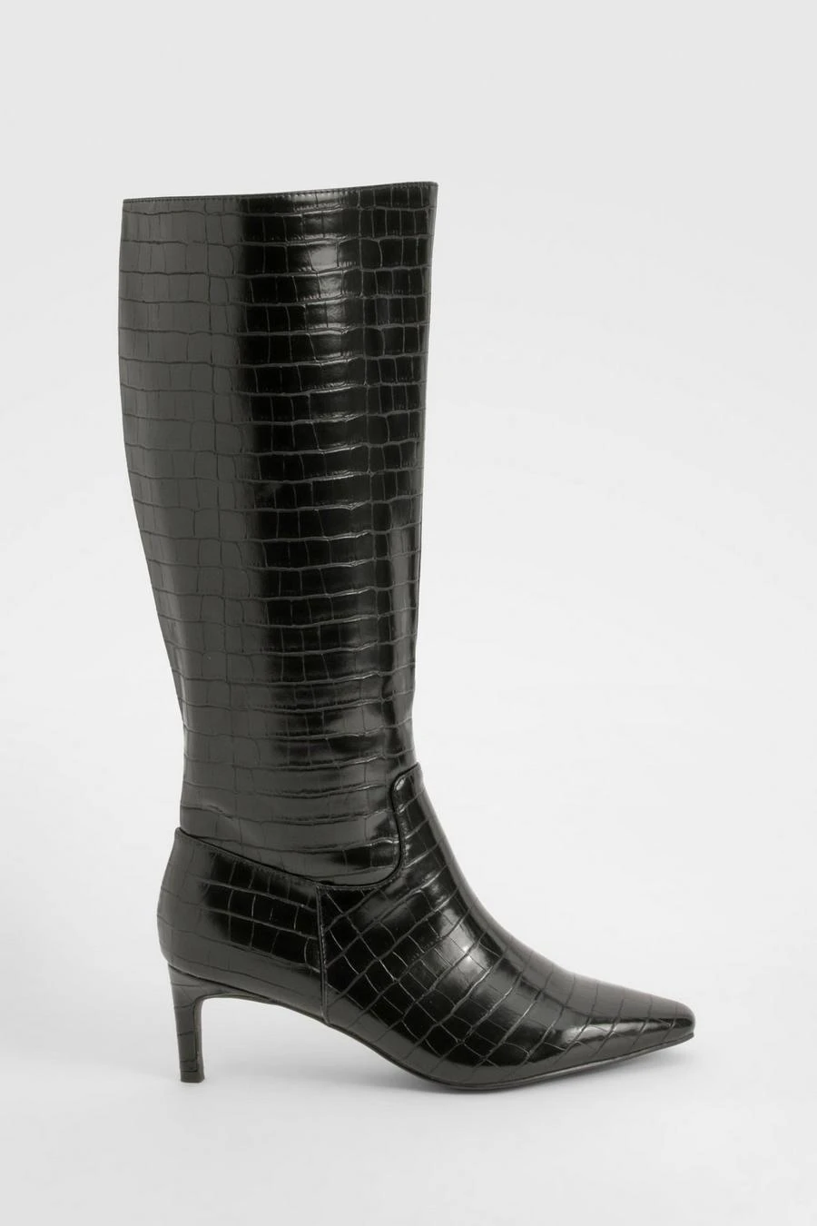 BOOHOO Wide Fit Croc Knee High Low Heeled Boots