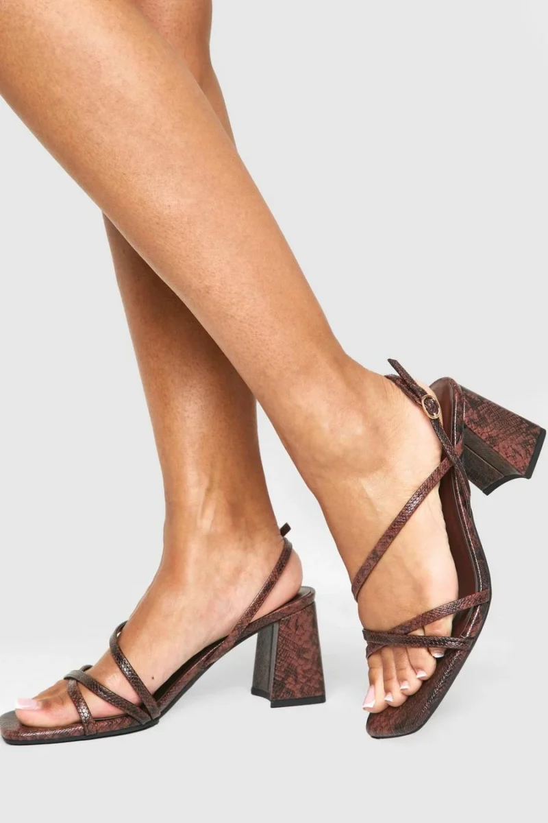 BOOHOO Wide Fit Croc Mid Block Slingback 2 Part Heels