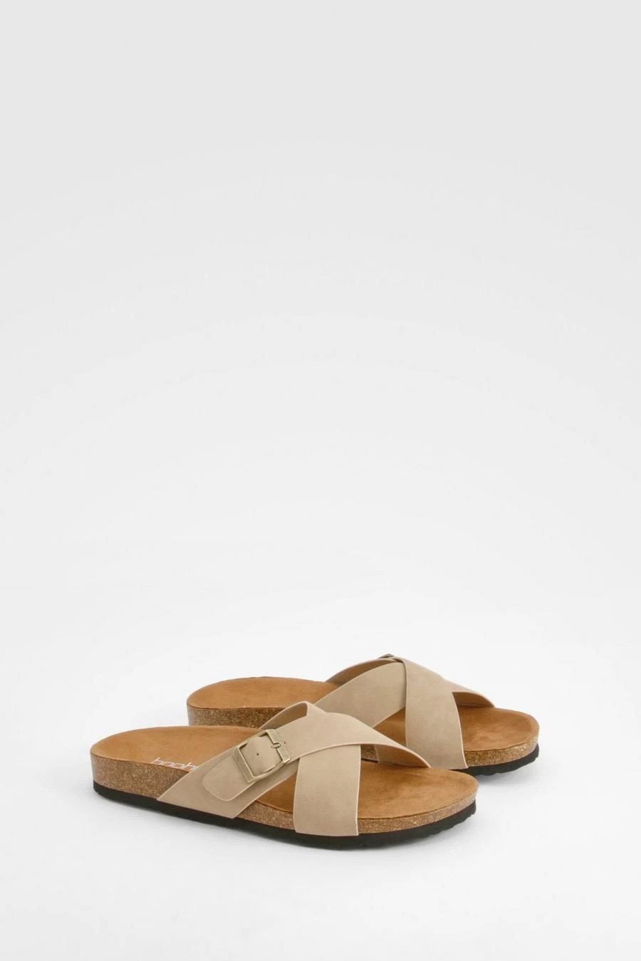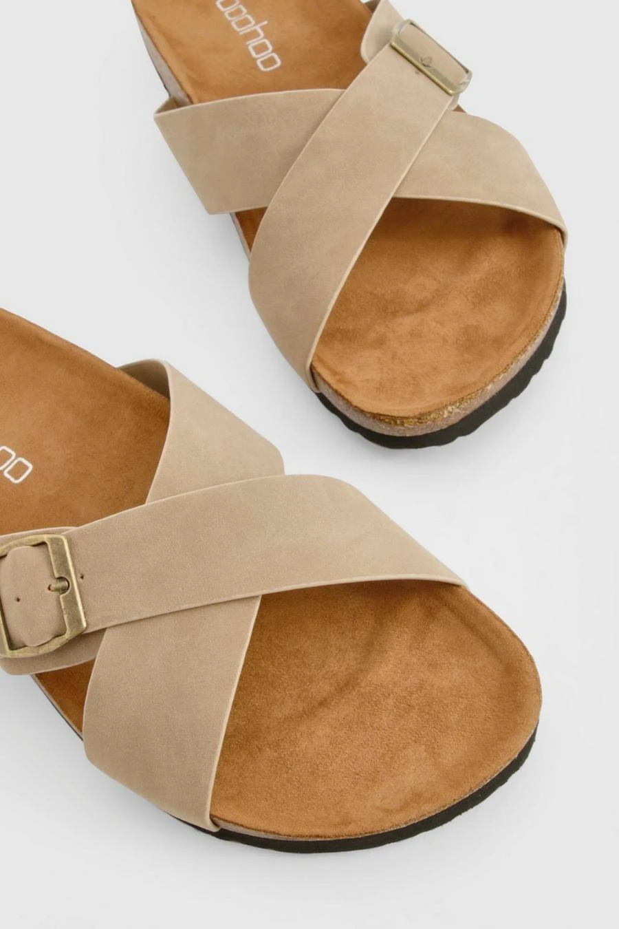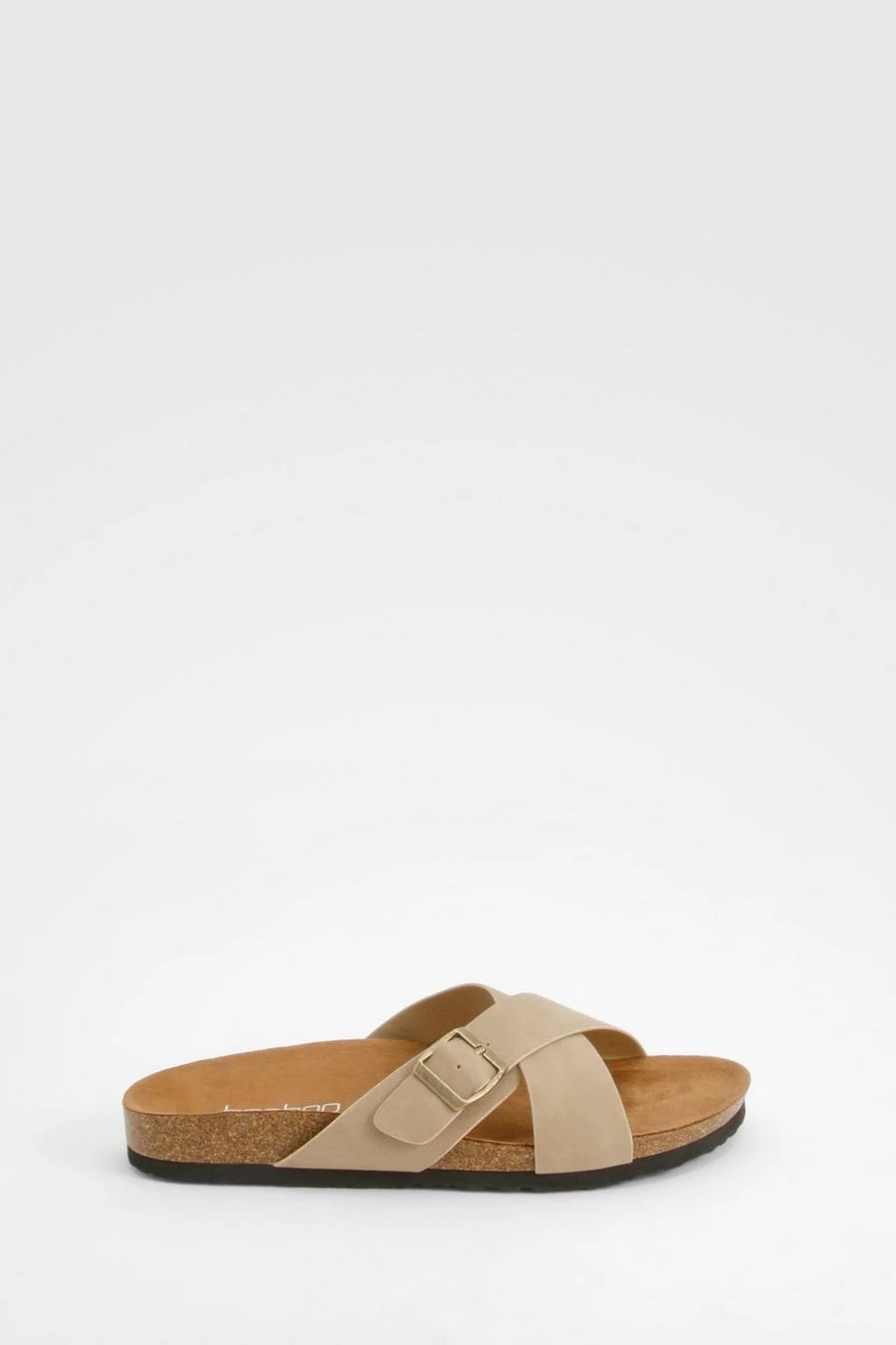 BOOHOO Wide Fit Cross Over Buckle Footbed Sliders