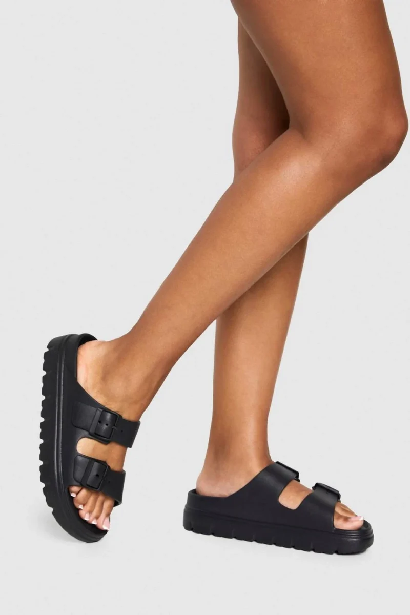 BOOHOO Wide Fit Double Strap Buckle Sliders