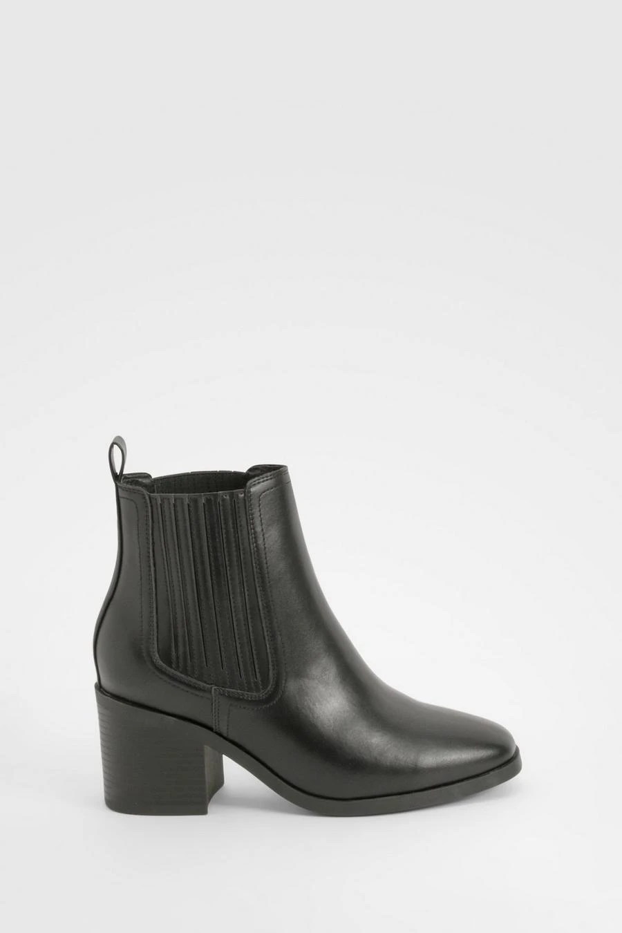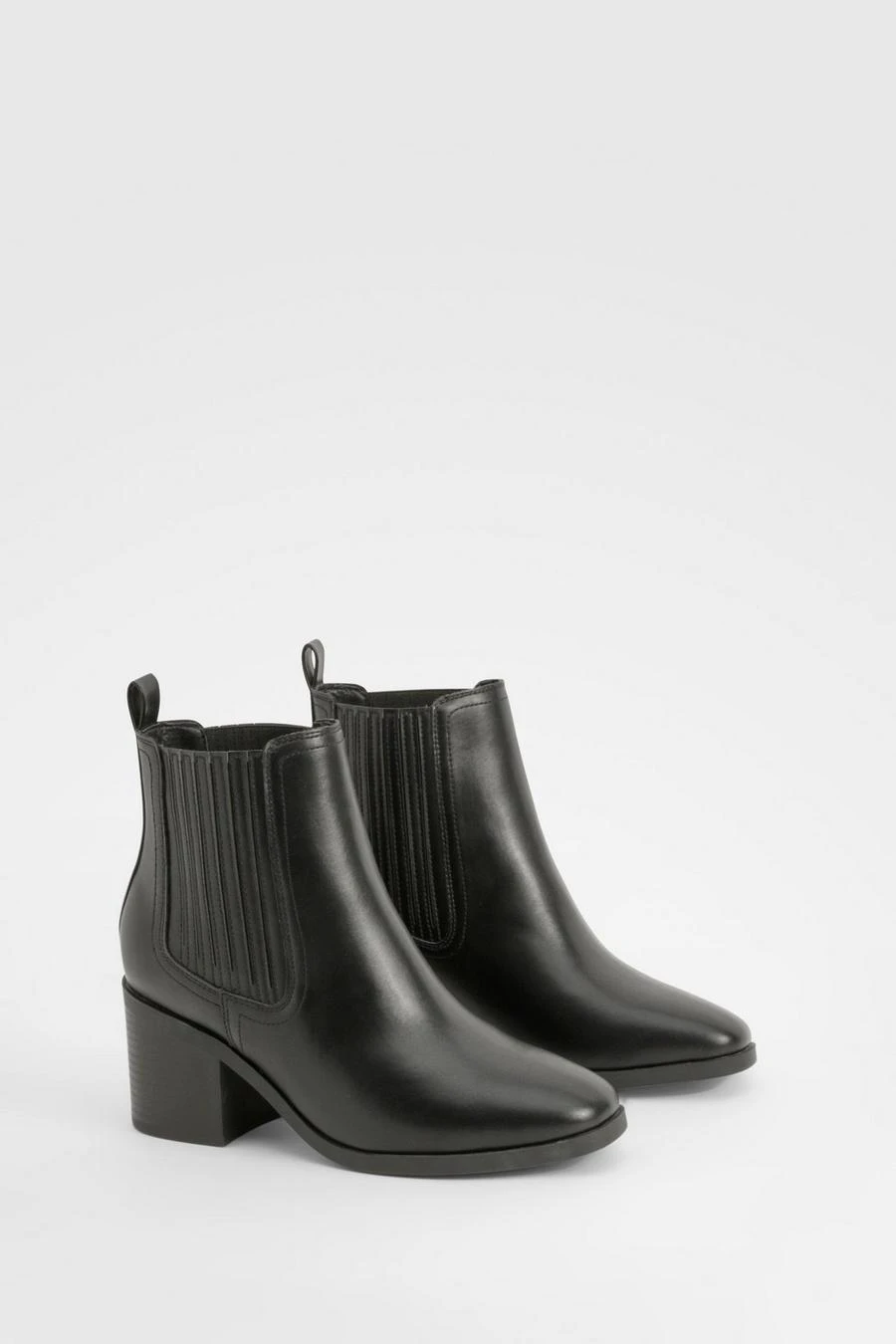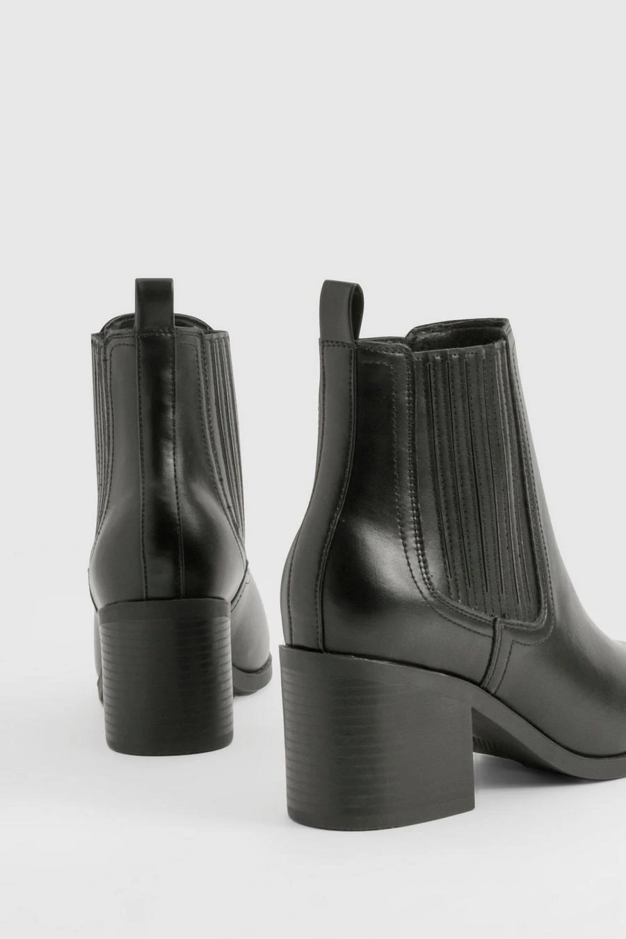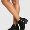 BOOHOO Wide Fit Elastic Panel Low Block Heeled Ankle Boots