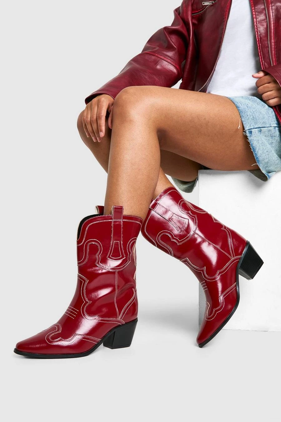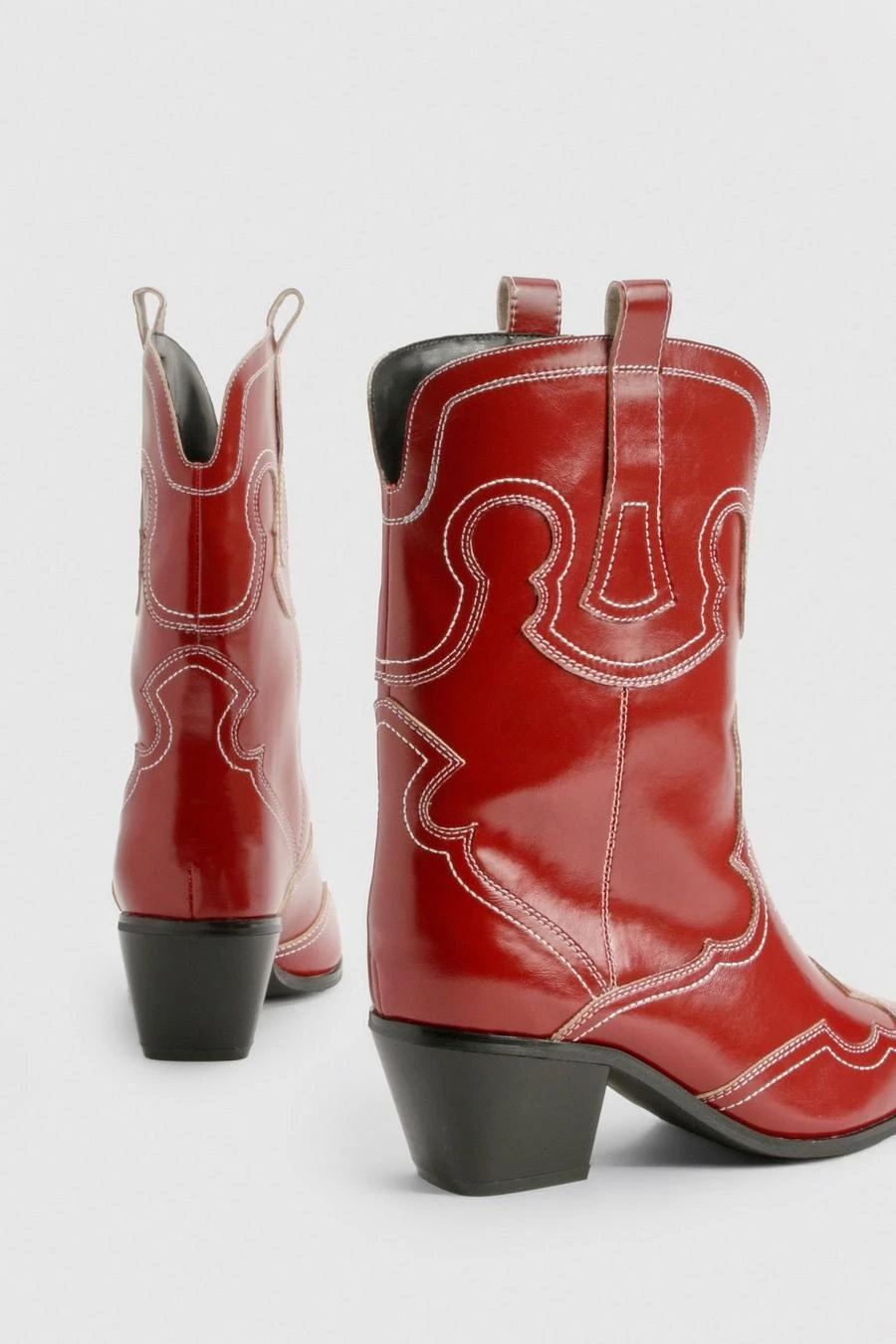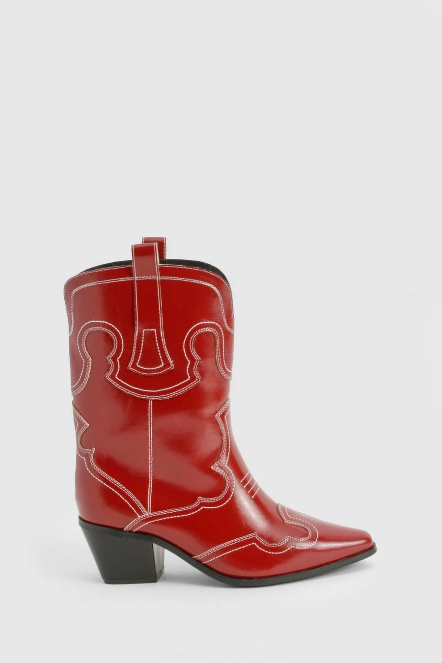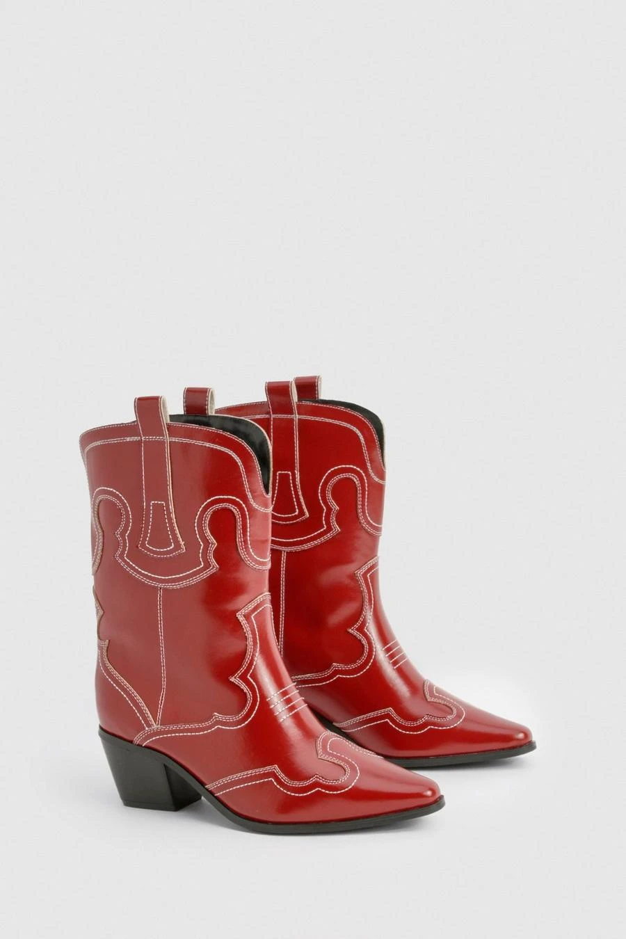 BOOHOO Wide Fit Embroidery Stitch Detail Western Boots