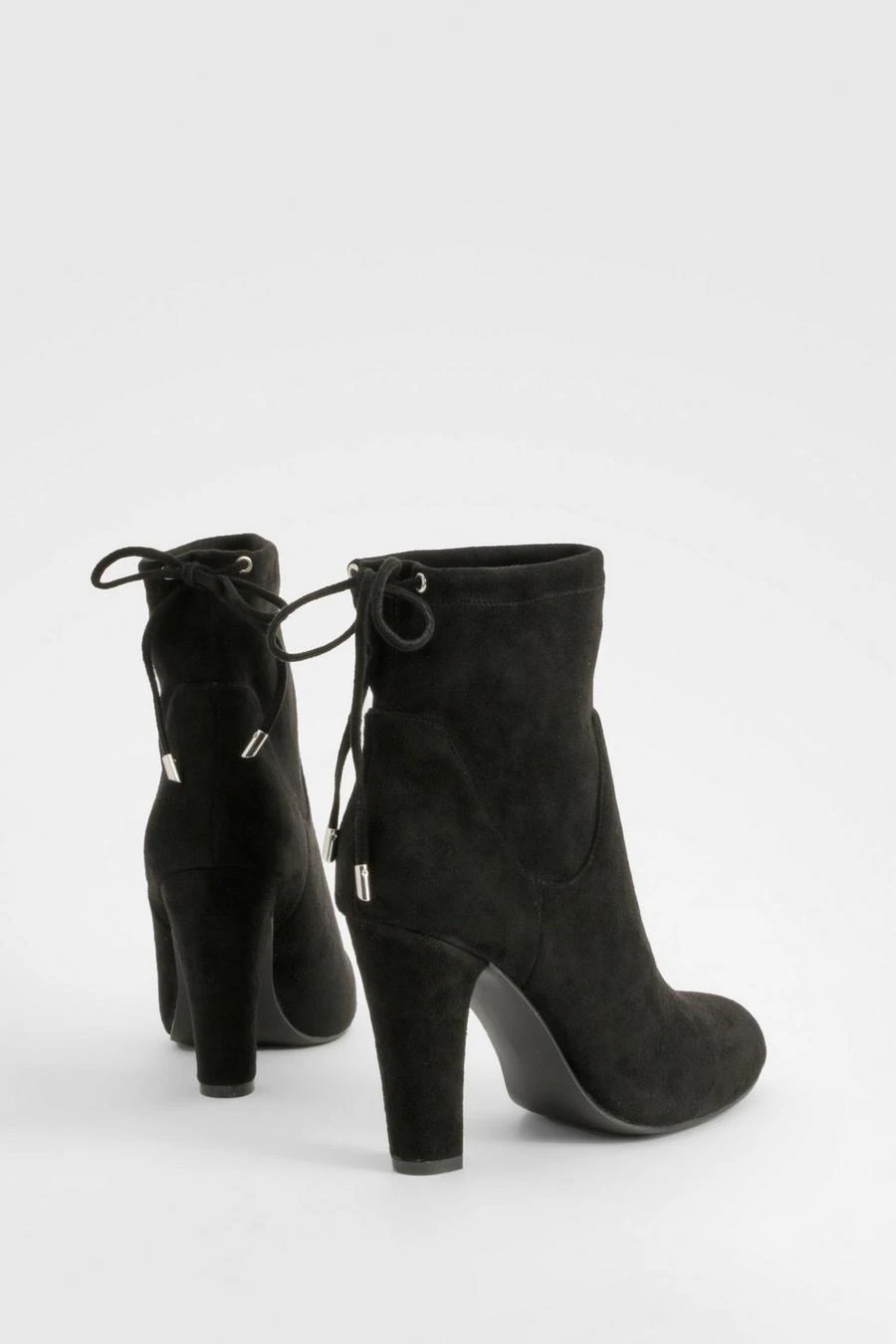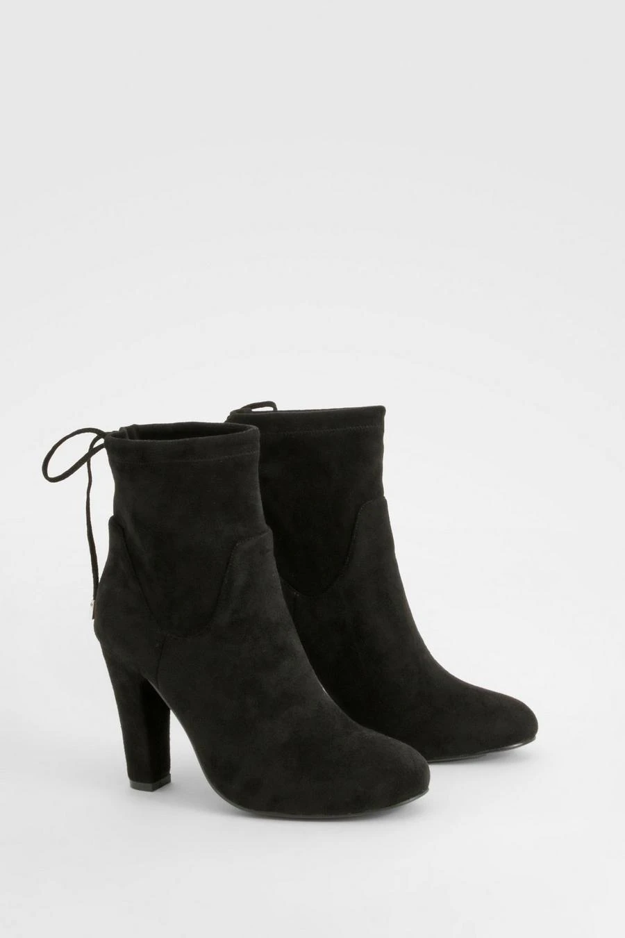 BOOHOO Wide Fit Faux Suede Ankle Detail Block Heeled Boots
