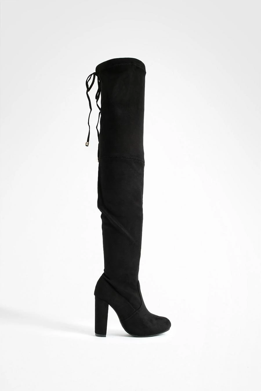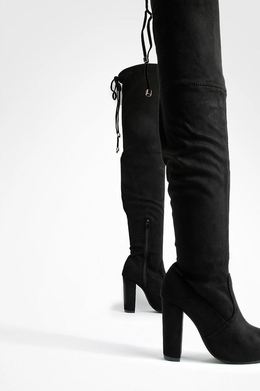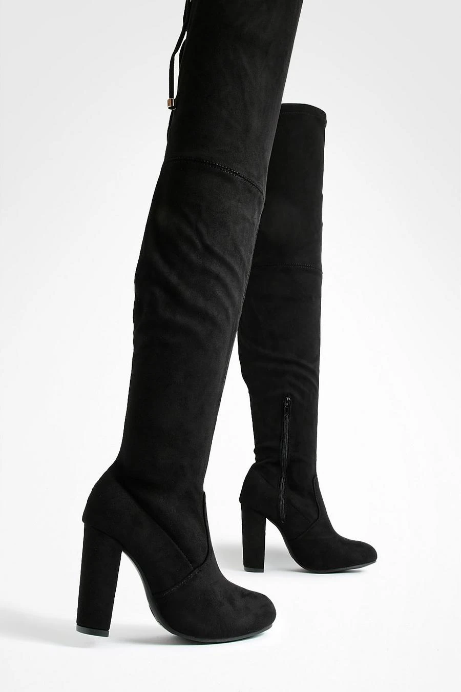 BOOHOO Wide Fit Faux Suede Block Heel Thigh High Boots
