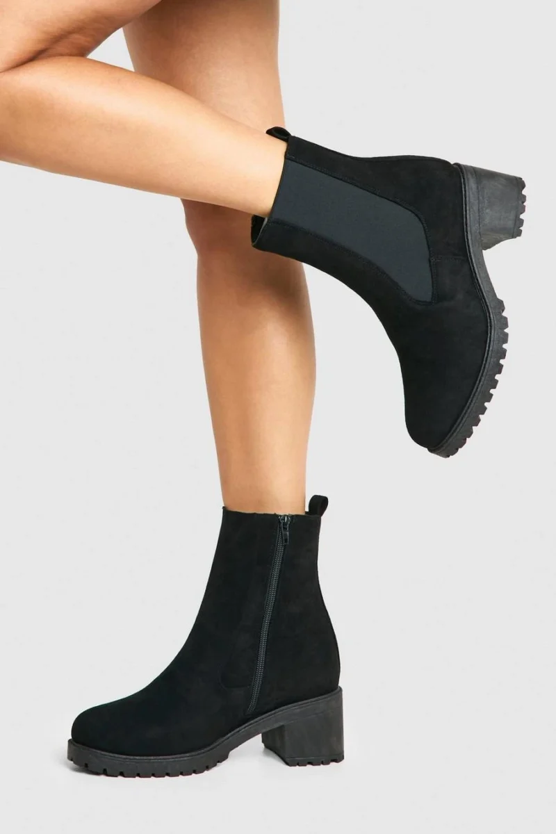 BOOHOO Wide Fit Faux Suede Elastic Panel Tab Detail Chelsea Boots