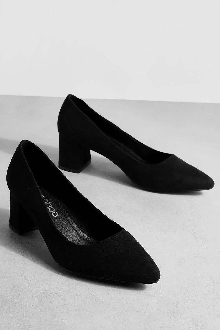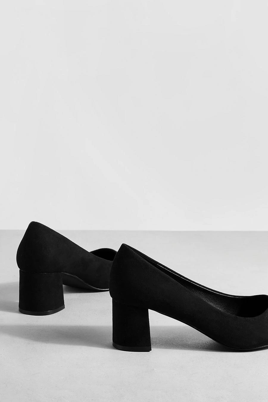 BOOHOO Wide Fit Faux Suede Low Block Court Shoe