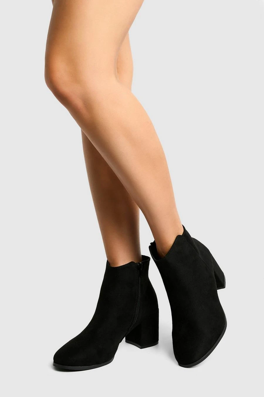 BOOHOO Wide Fit Faux Suede Low Block Heel Ankle Boots