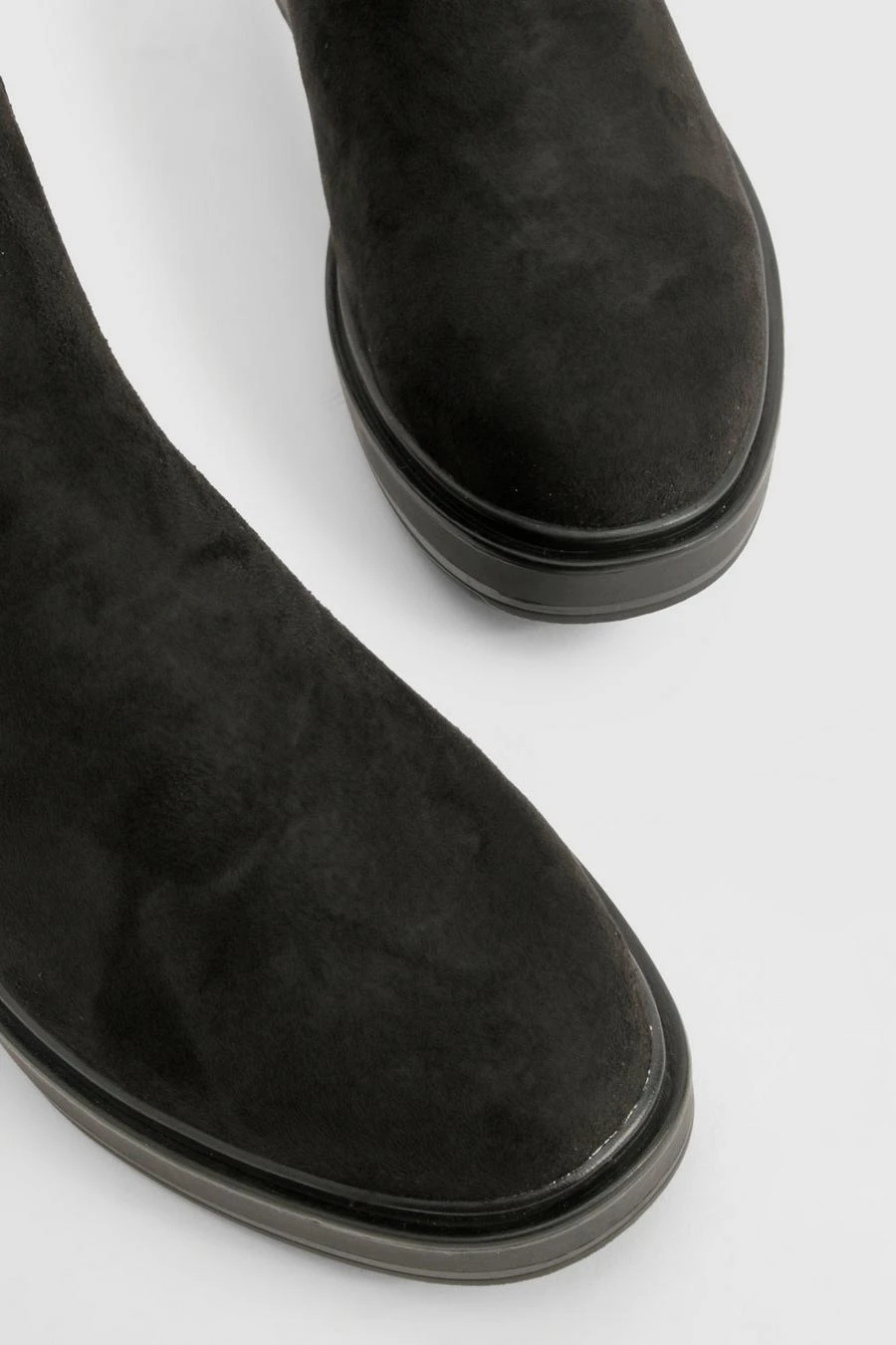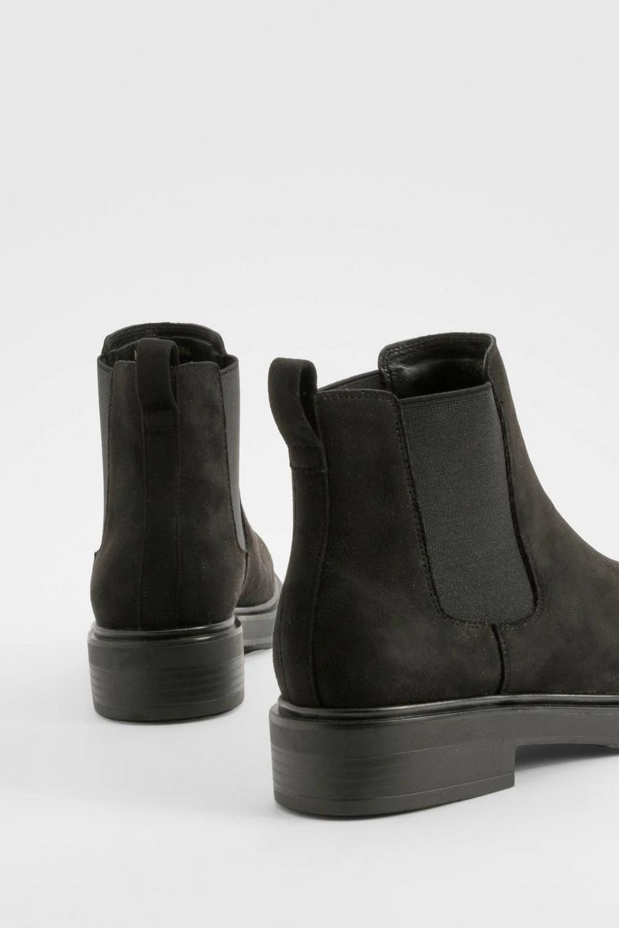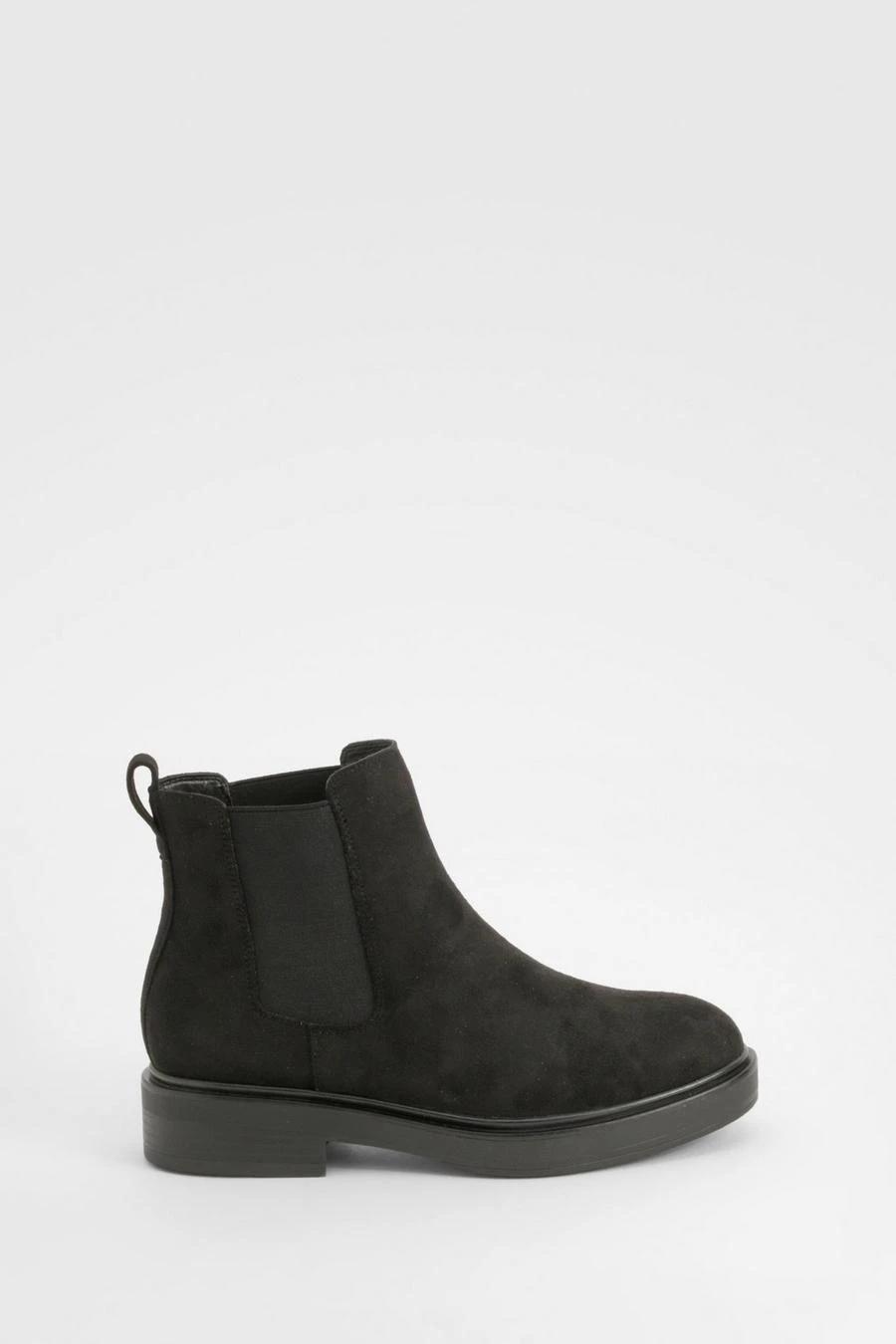 BOOHOO Wide Fit Faux Suede Panel Detail Low Chelsea Boots