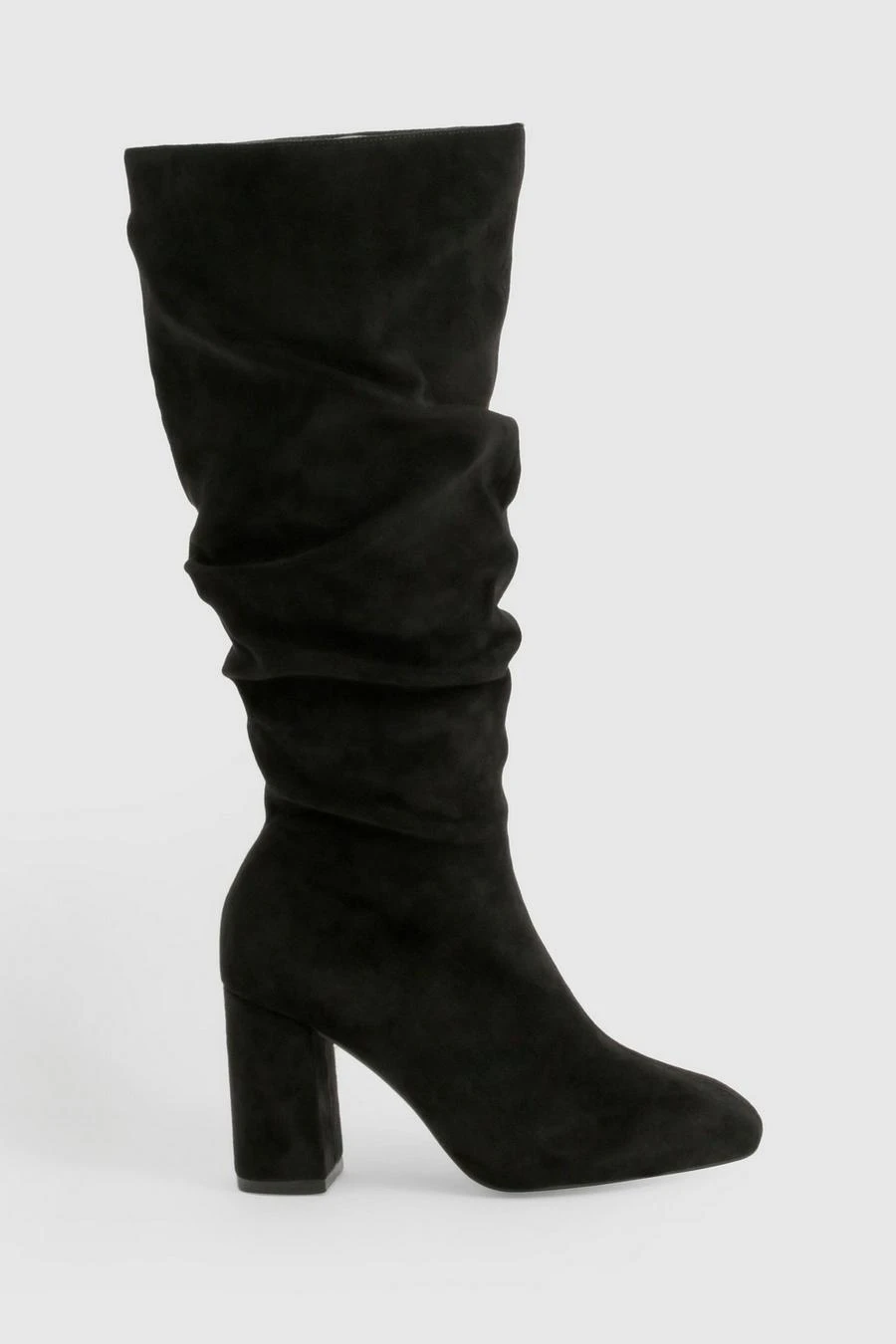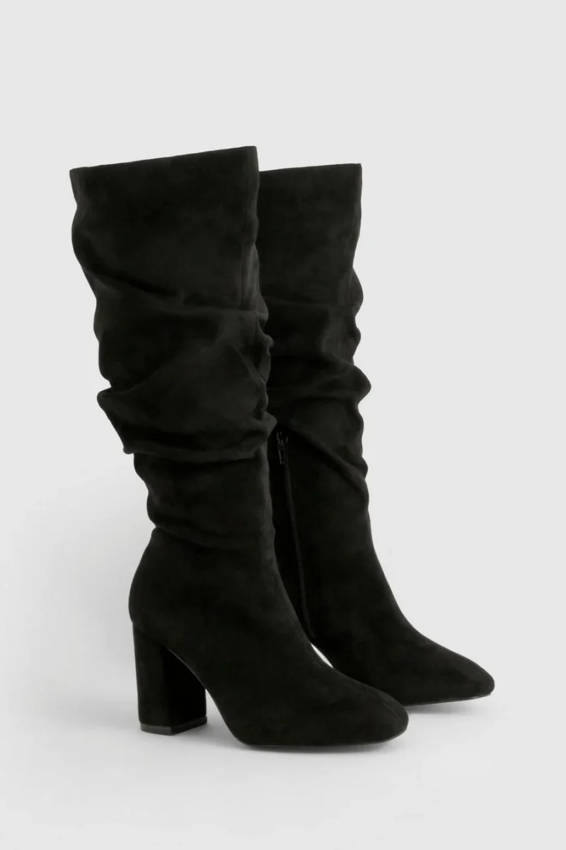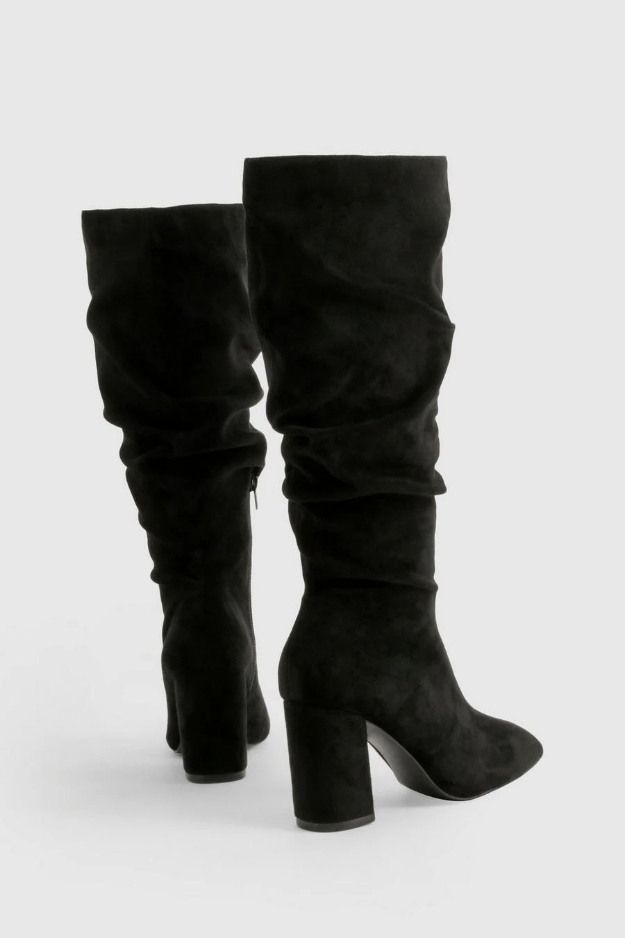 BOOHOO Wide Fit Faux Suede Slouchy Block Heel Boots