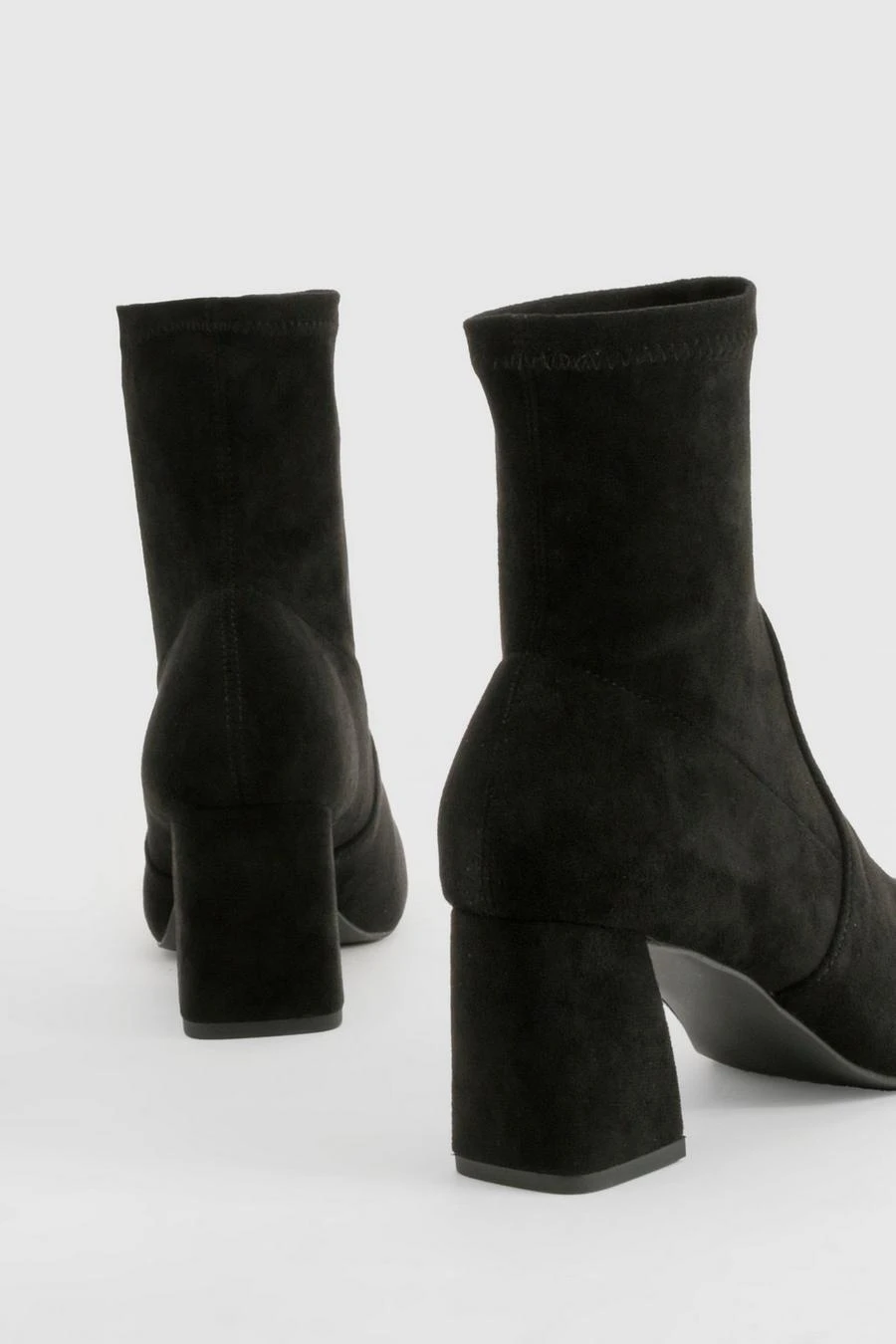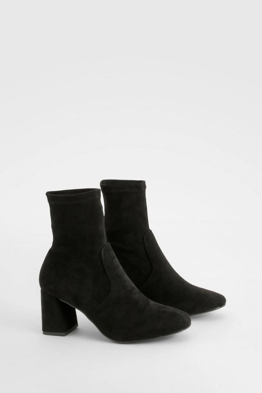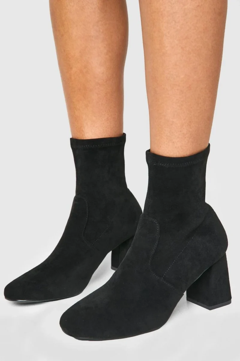 BOOHOO Wide Fit Faux Suede Square Toe Block Heeled Boots