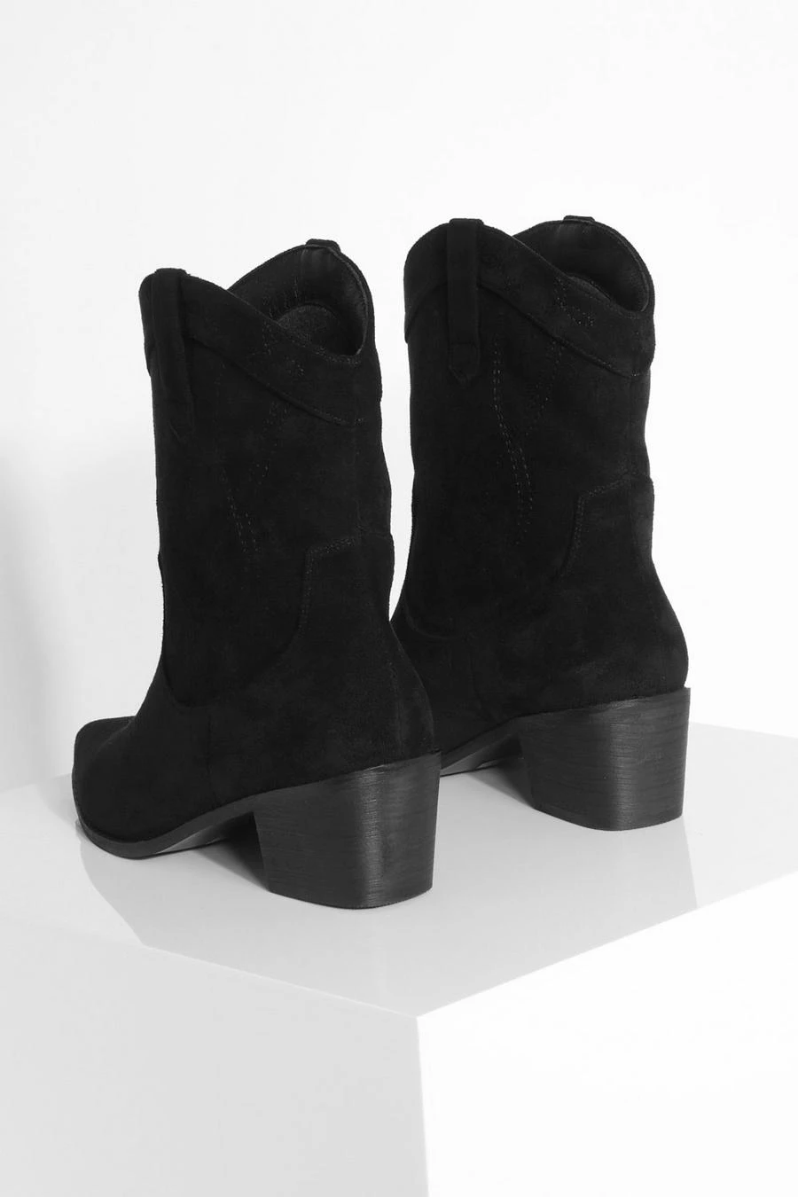 BOOHOO Wide Fit Faux Suede Stitch Detail Ankle Western Cowboy Boots