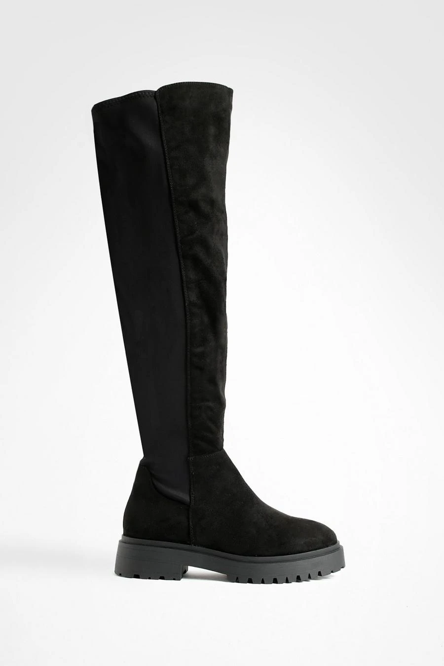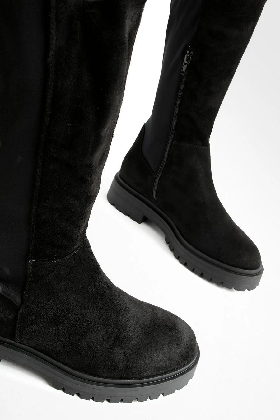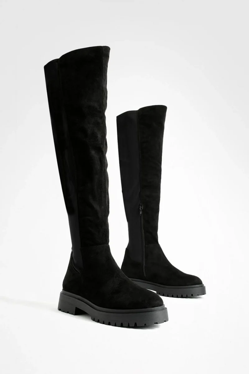 BOOHOO Wide Fit Faux Suede Stretch Panel Over The Knee Boots