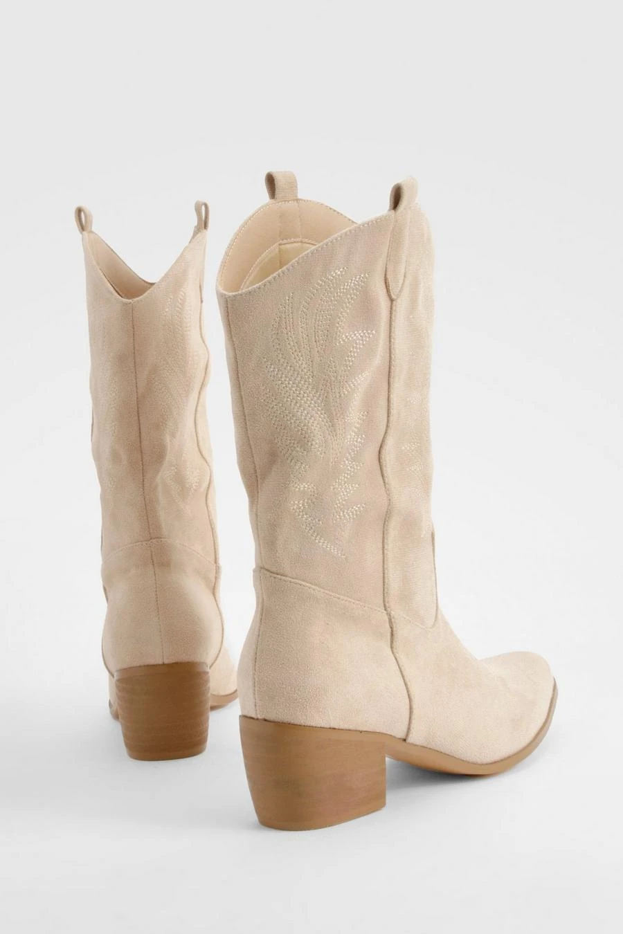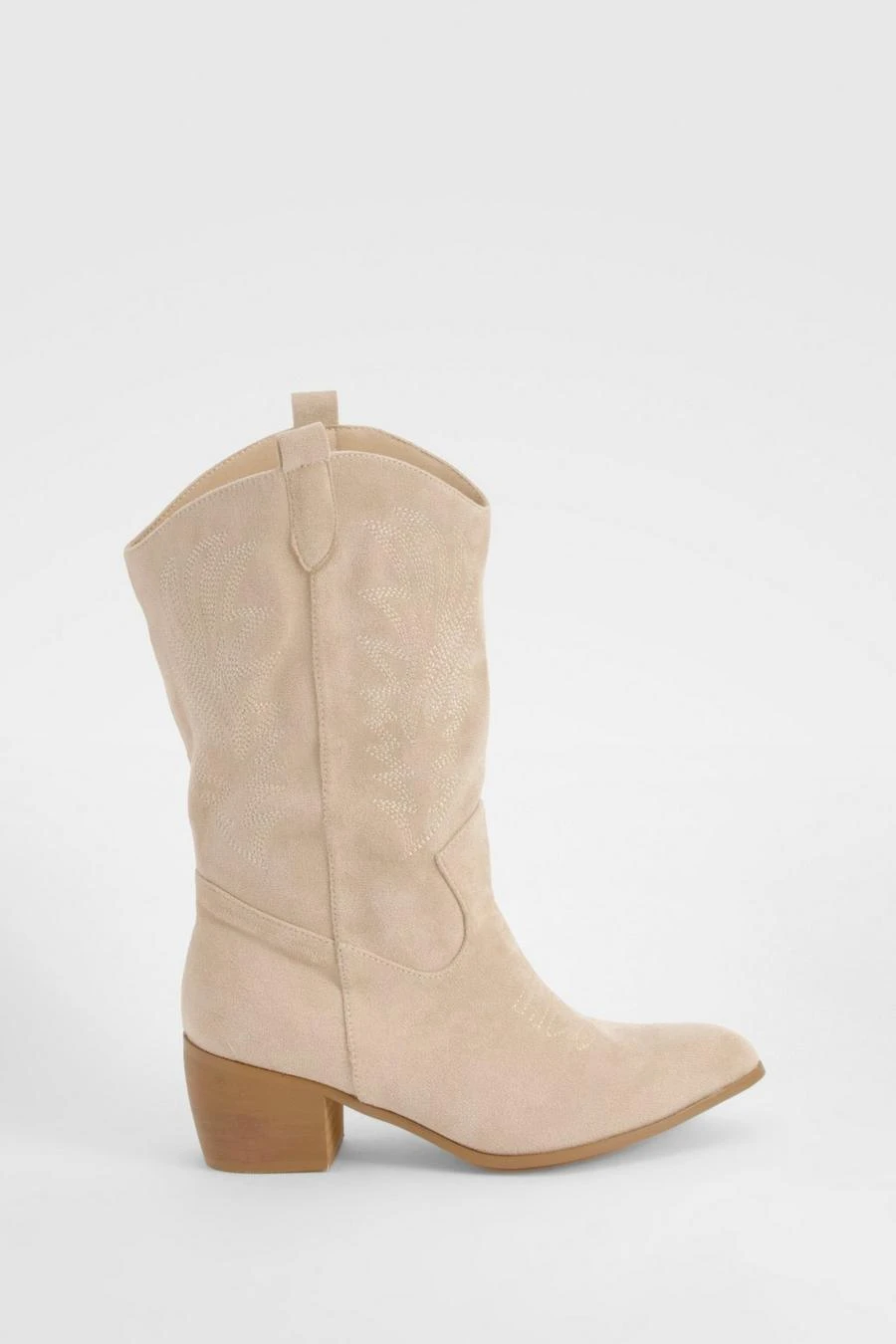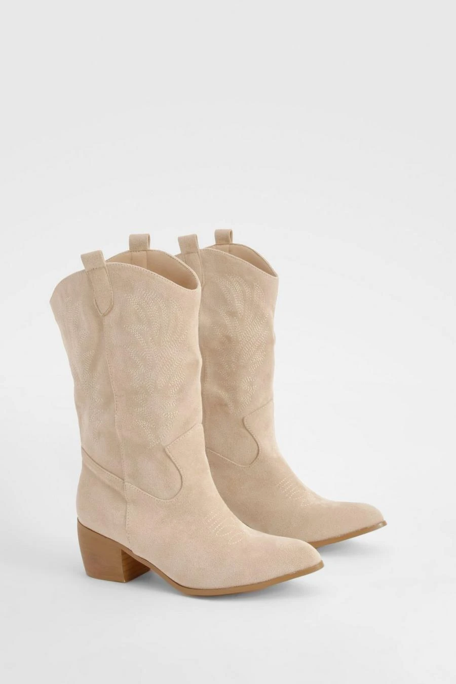 BOOHOO Wide Fit Faux Suede Tab Detail Ankle Cowboy Western Boots