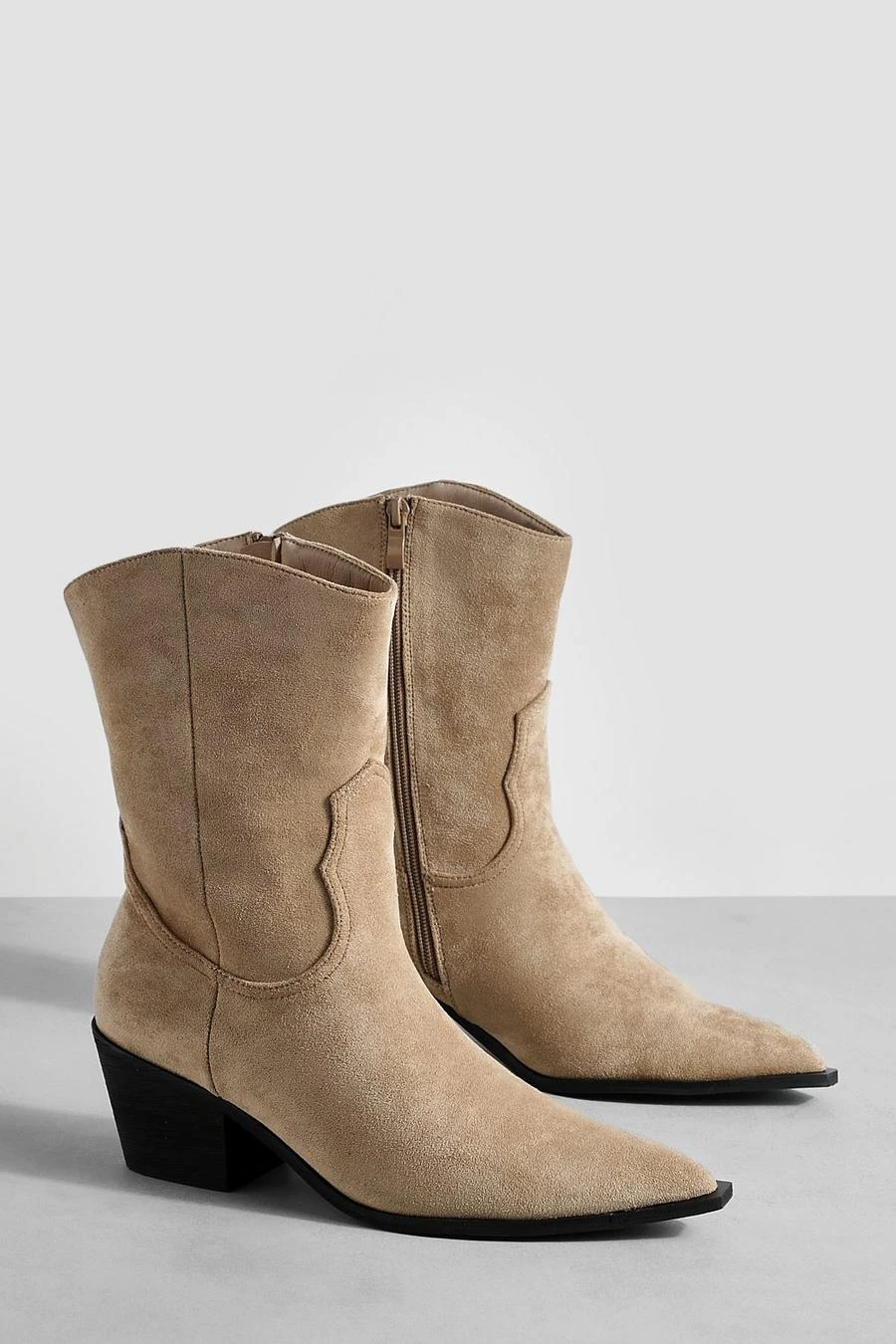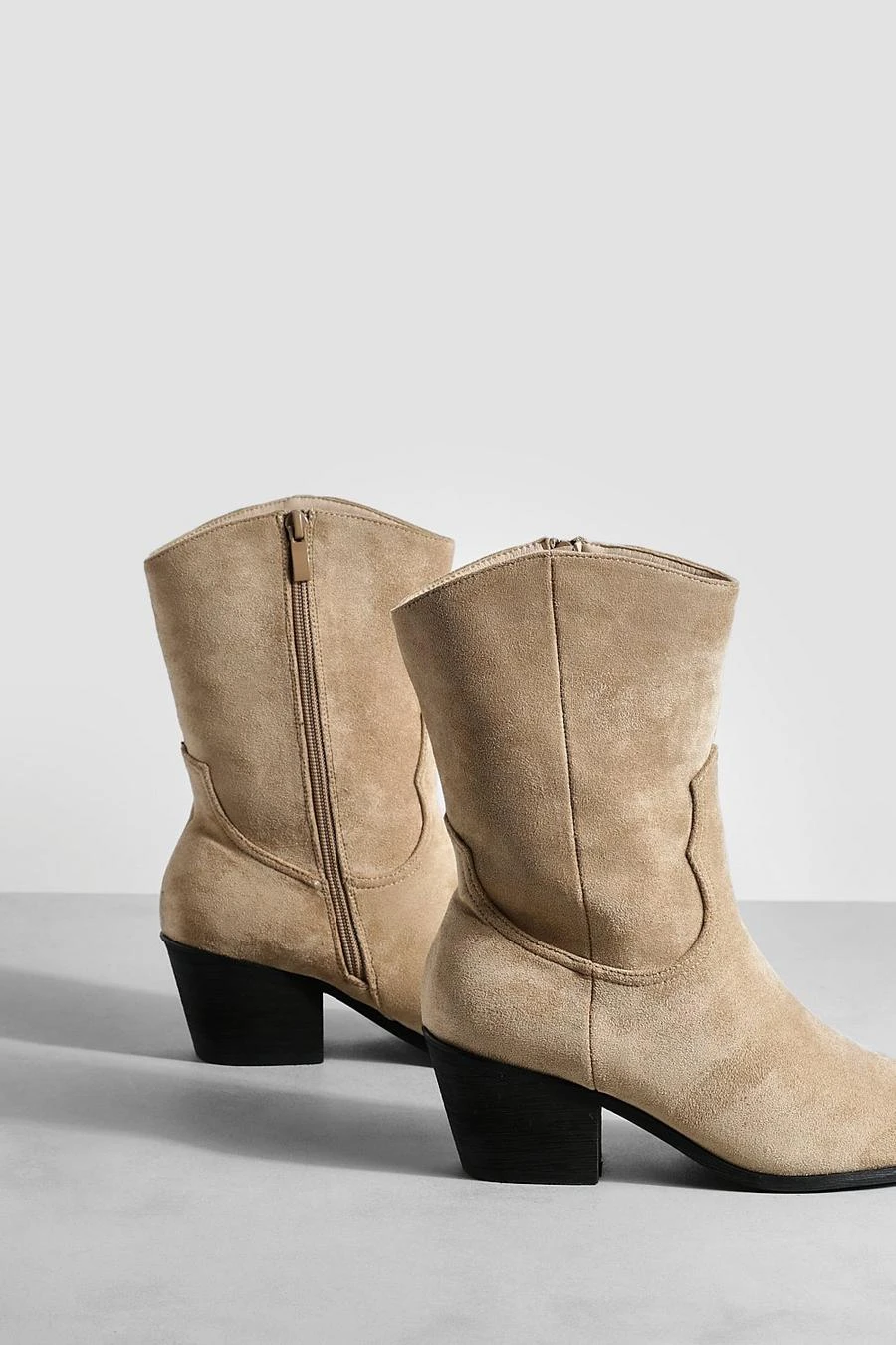 BOOHOO Wide Fit Faux Suede Western Ankle Cowboy Boots