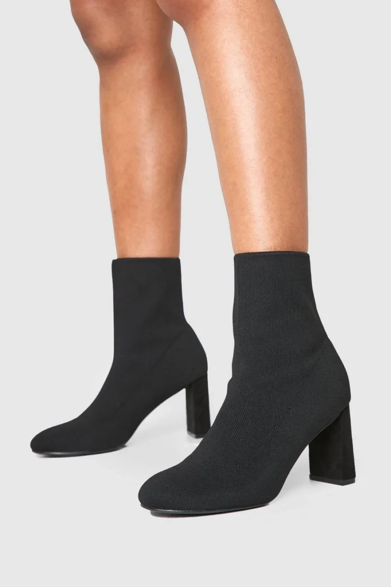 BOOHOO Wide Fit Flat Heel Knitted Sock Boots