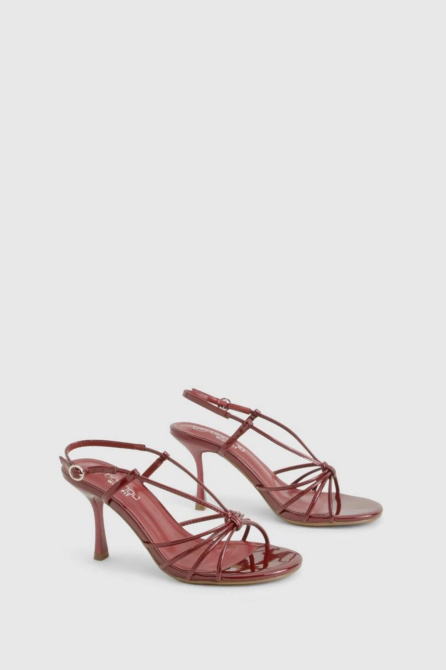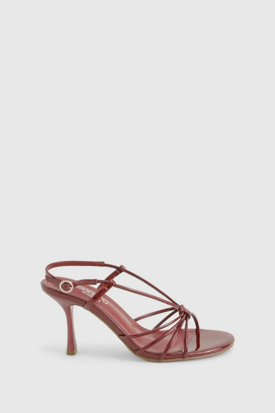 BOOHOO Wide Fit Glossy Knot Detail Strappy Heels