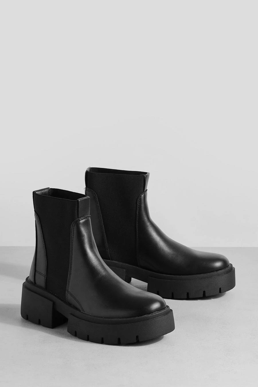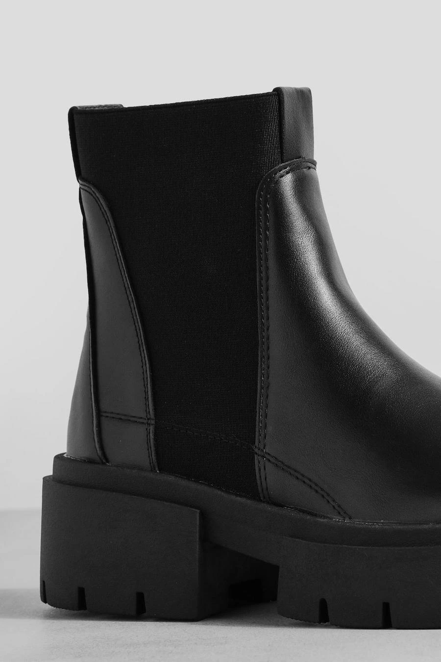 BOOHOO Wide Fit Knit Detail Chunky Chelsea Boots