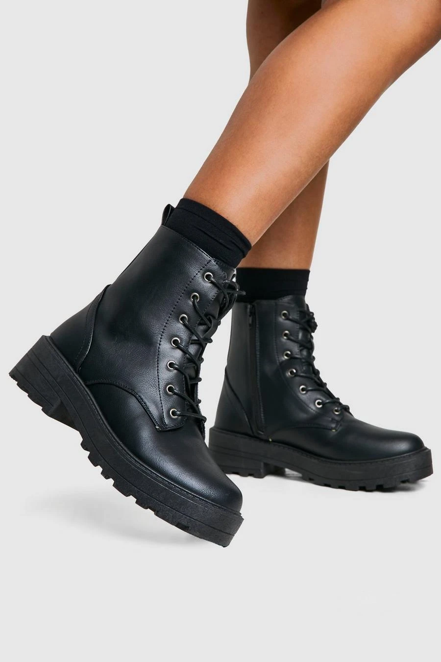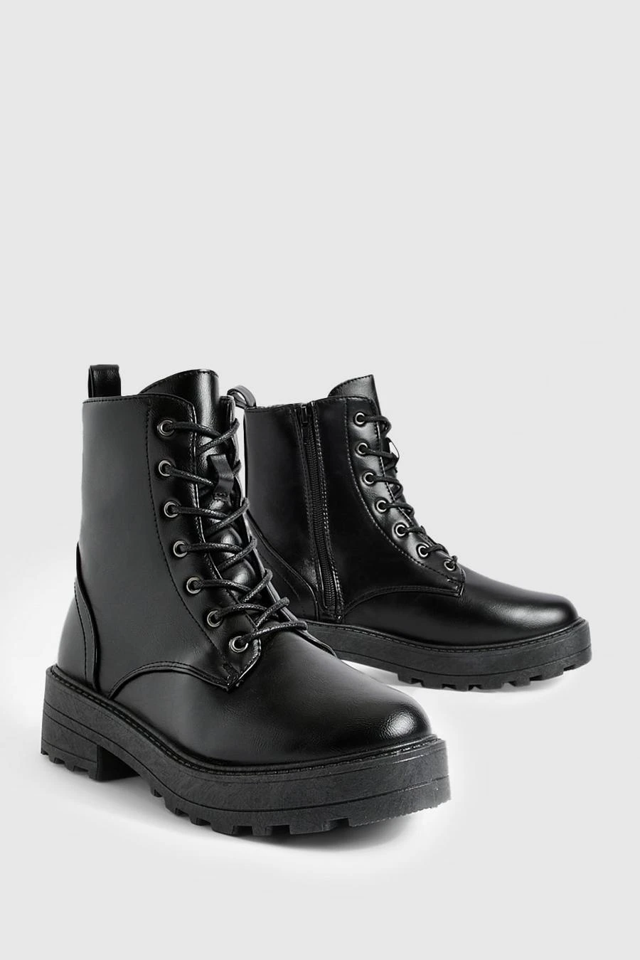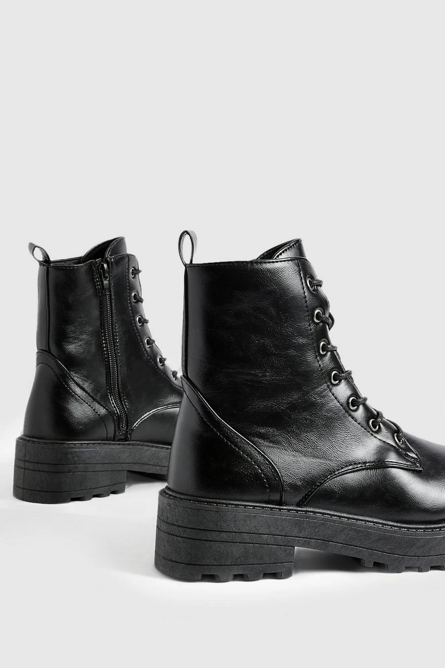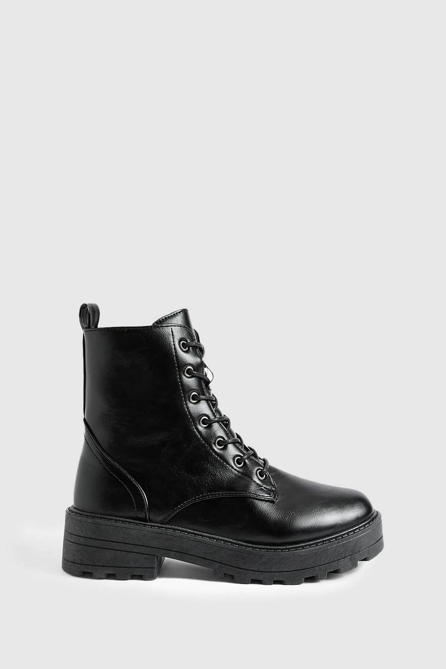 BOOHOO Wide Fit Lace Up Chunky Hiker Boots