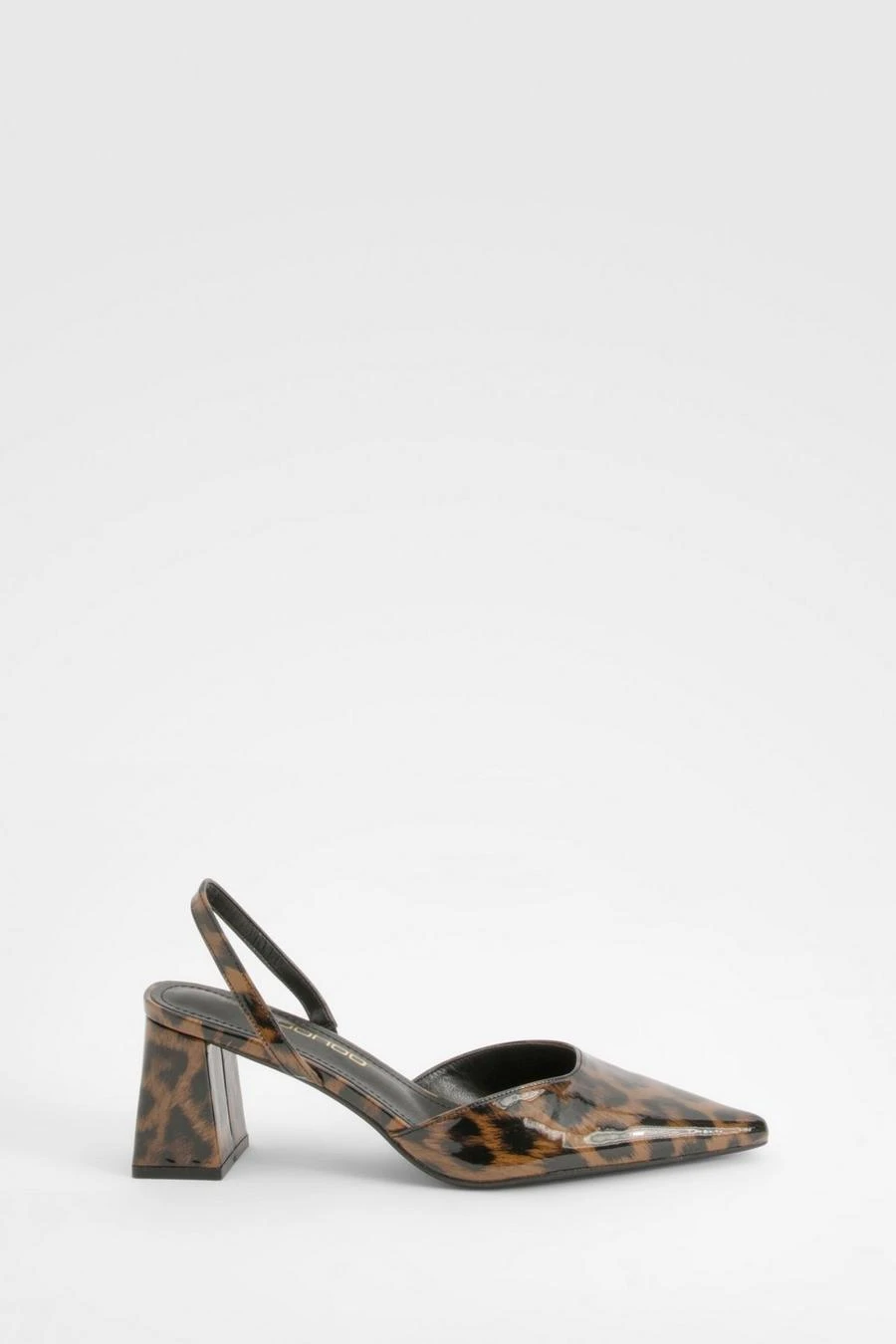 BOOHOO Wide Fit Leopard Block Heel Court Shoes