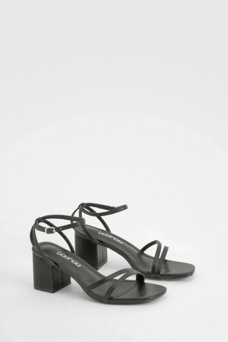 BOOHOO Wide Fit Low Block Cross Strap Heels