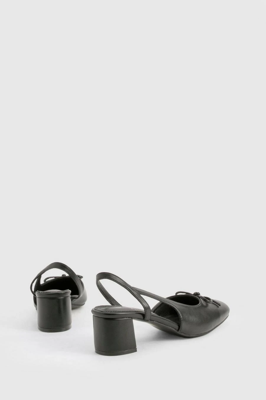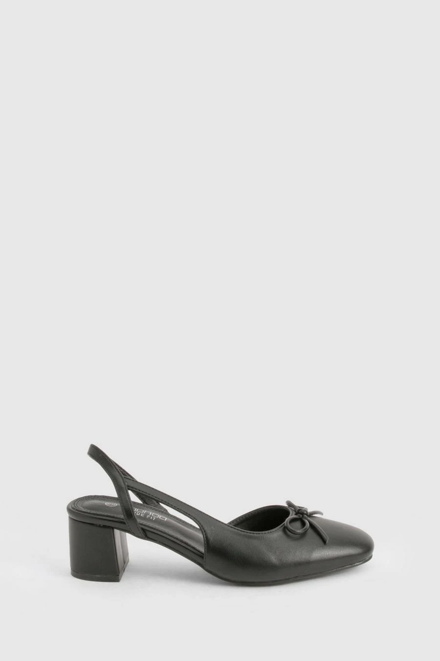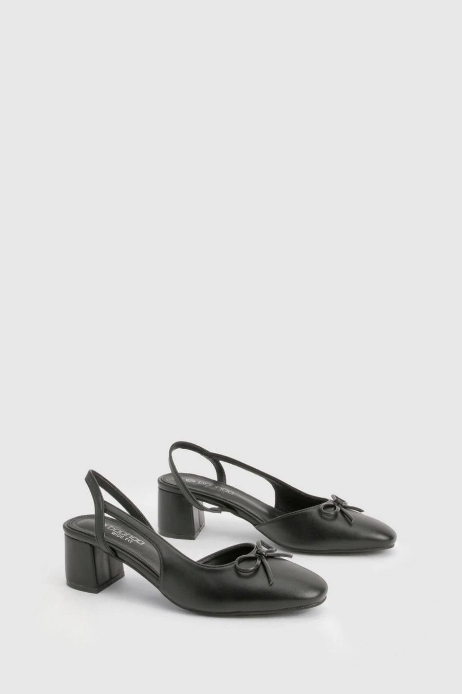BOOHOO Wide Fit Low Block Heel Slingback Bow Ballets