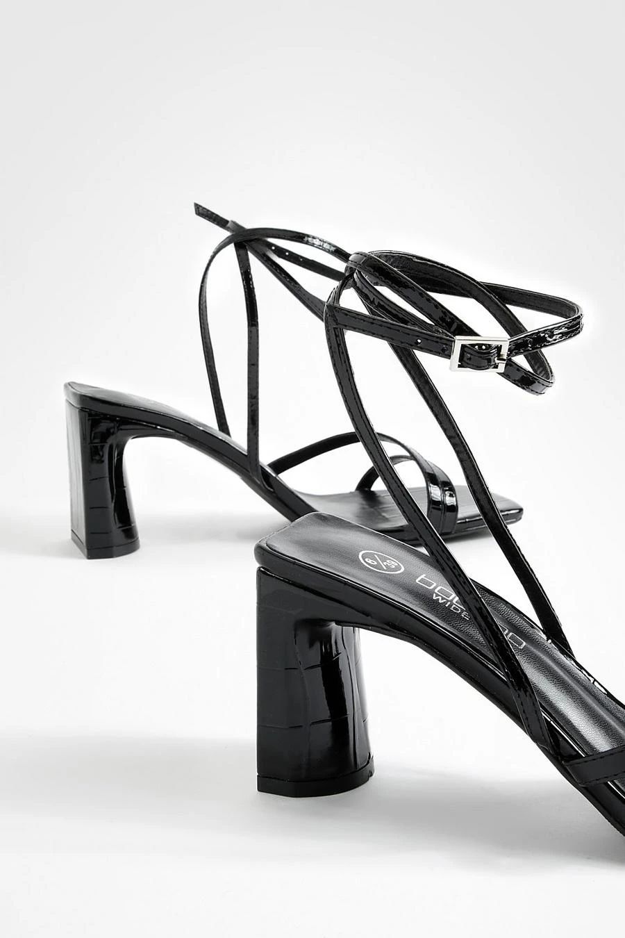 BOOHOO Wide Fit Low Heel Asymmetric Strap Sandals