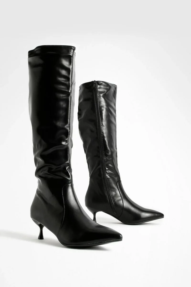 BOOHOO Wide Fit Low Heel Pointed Toe Knee High Boots
