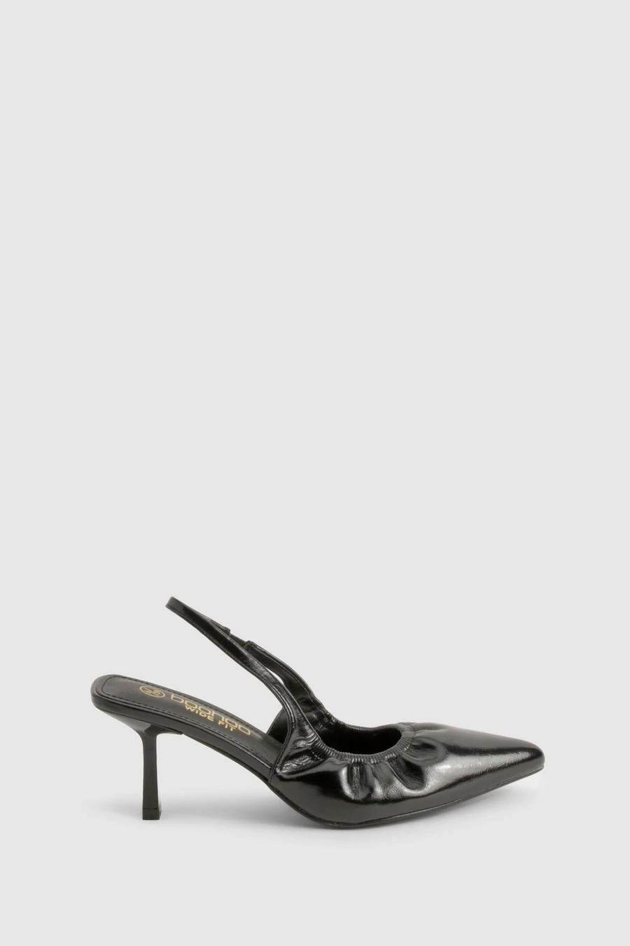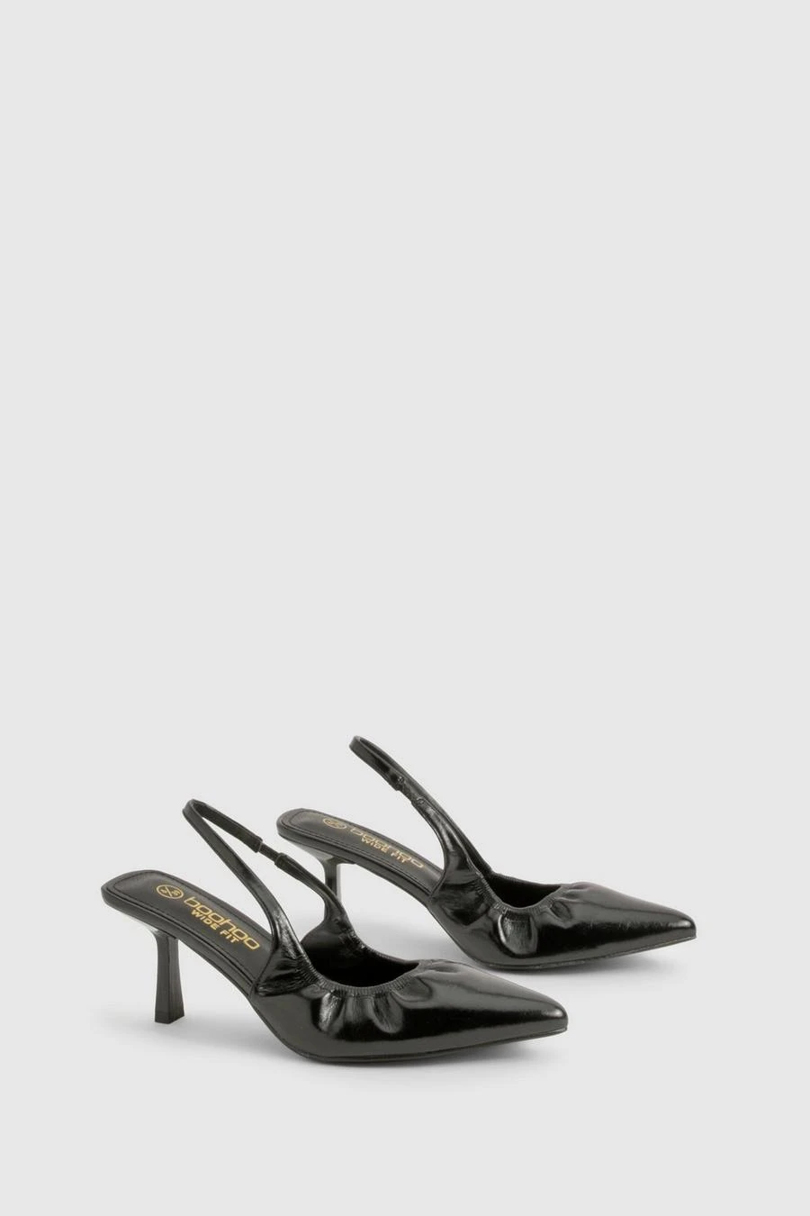 BOOHOO Wide Fit Low Stiletto Ruched Slingback Court Shoes
