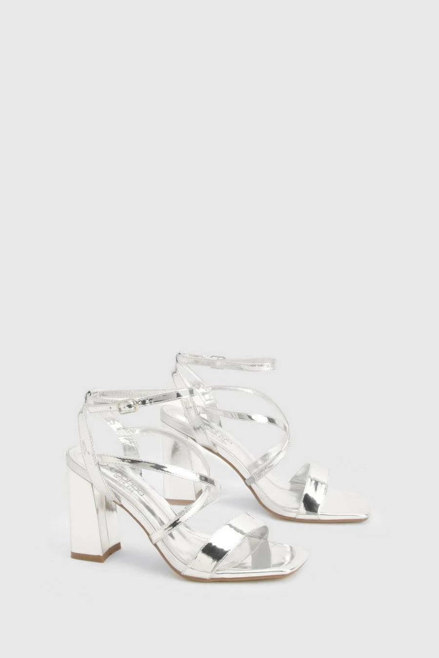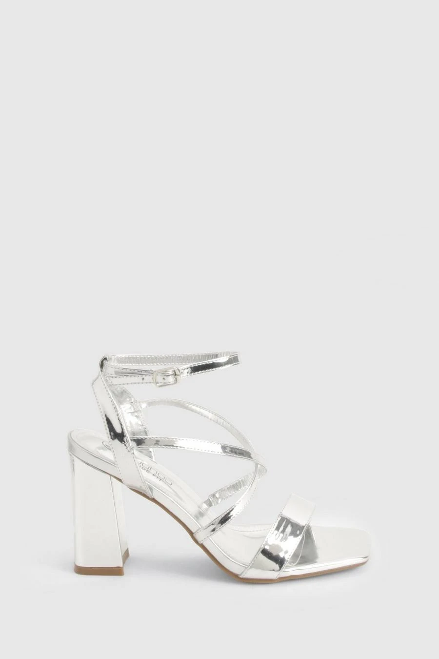 BOOHOO Wide Fit Metallic Cross Over Detail Block Heel