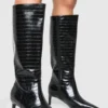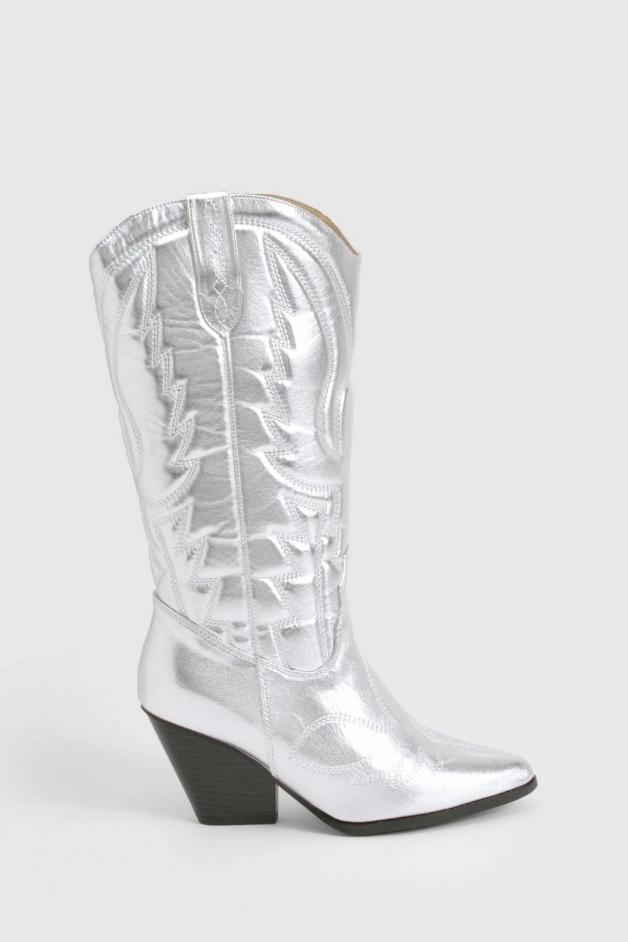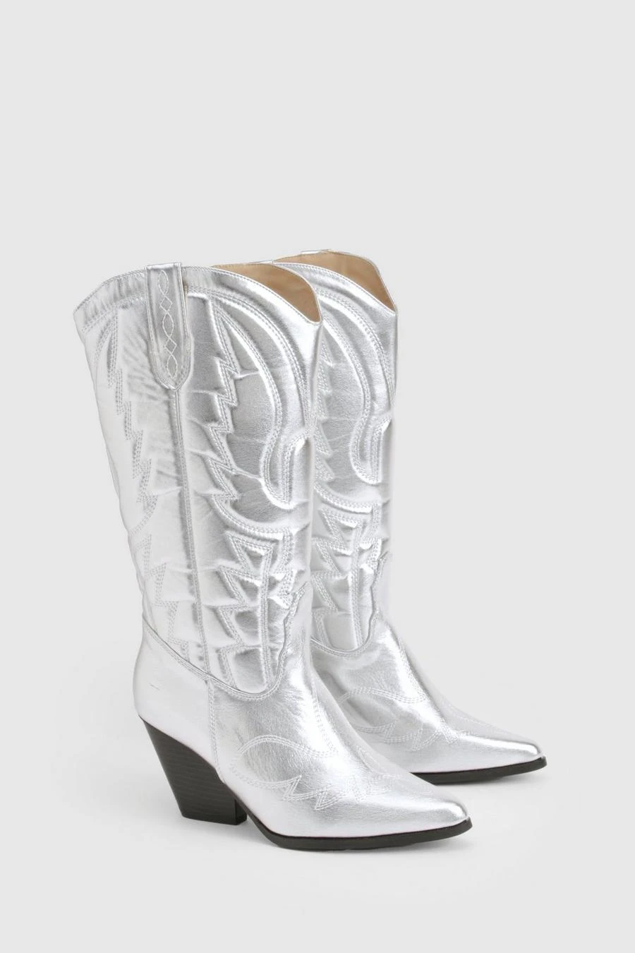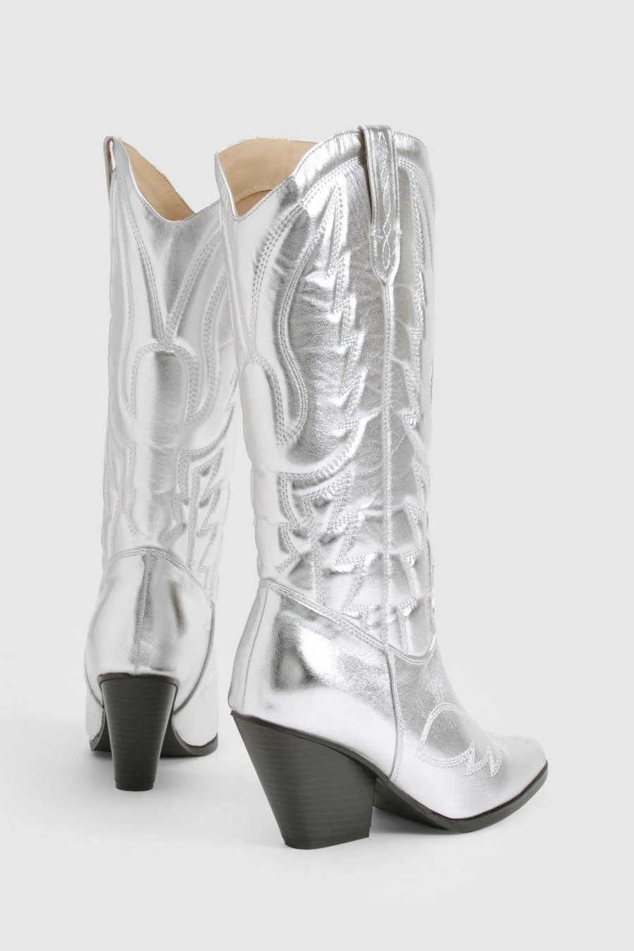 BOOHOO Wide Fit Metallic Knee High Western Cowboy Boots