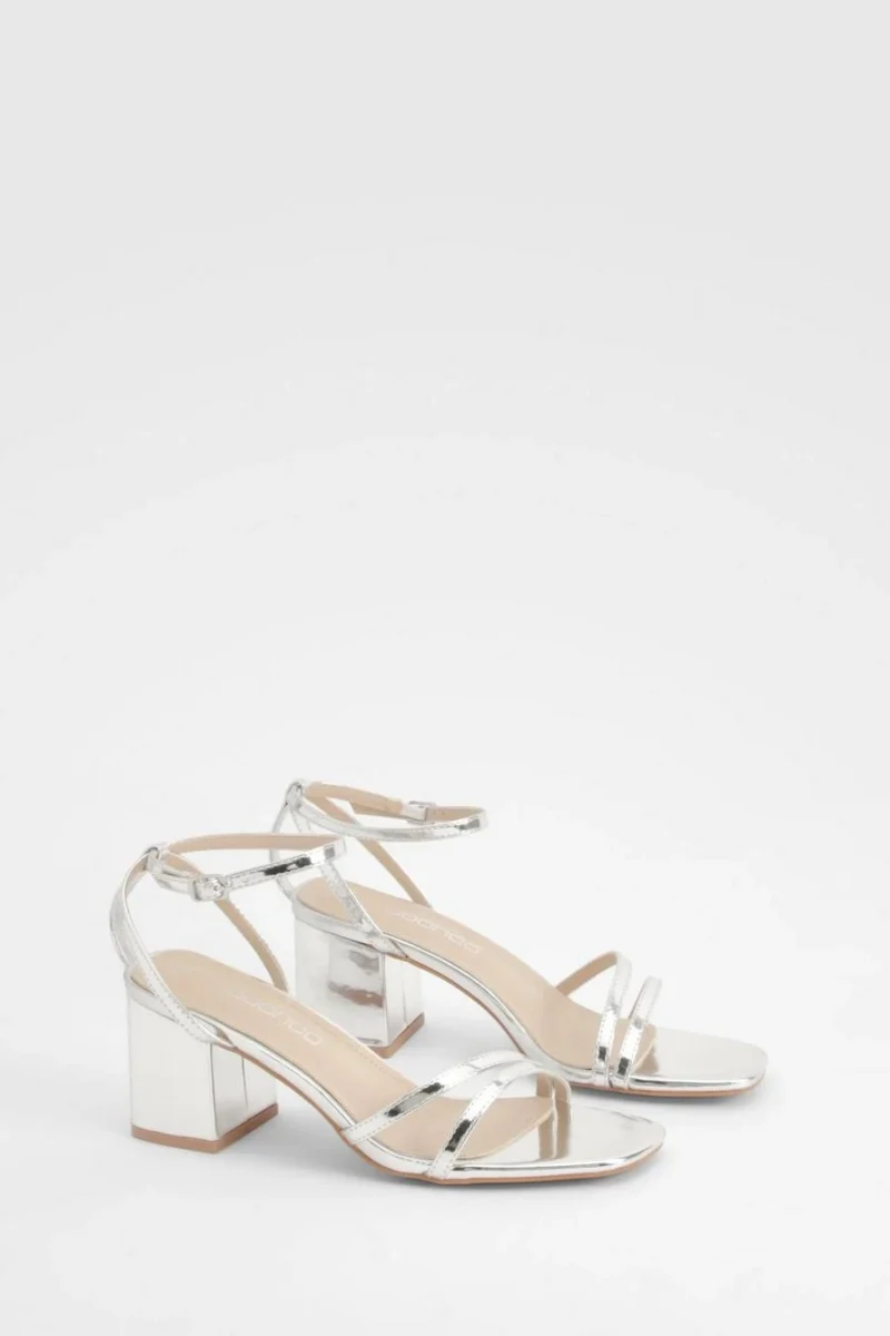 BOOHOO Wide Fit Metallic Low Block Cross Strap Heels