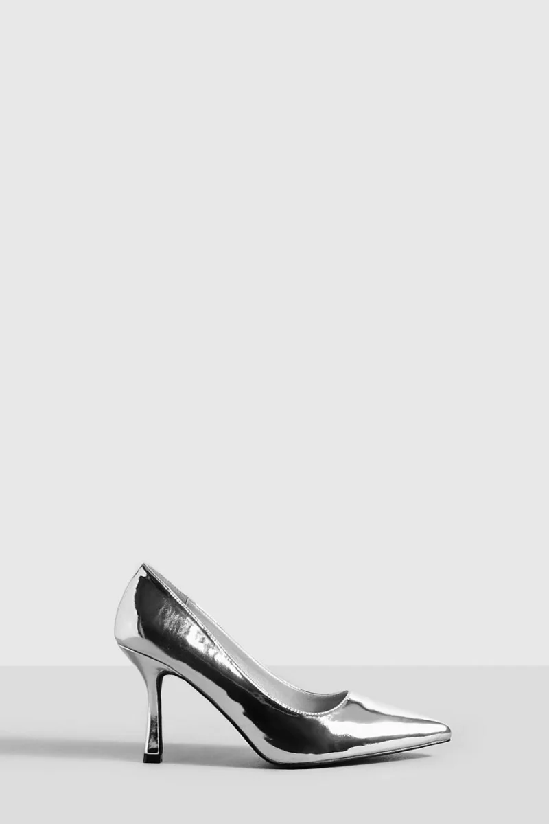 BOOHOO Wide Fit Metallic Low Stiletto Court Shoe