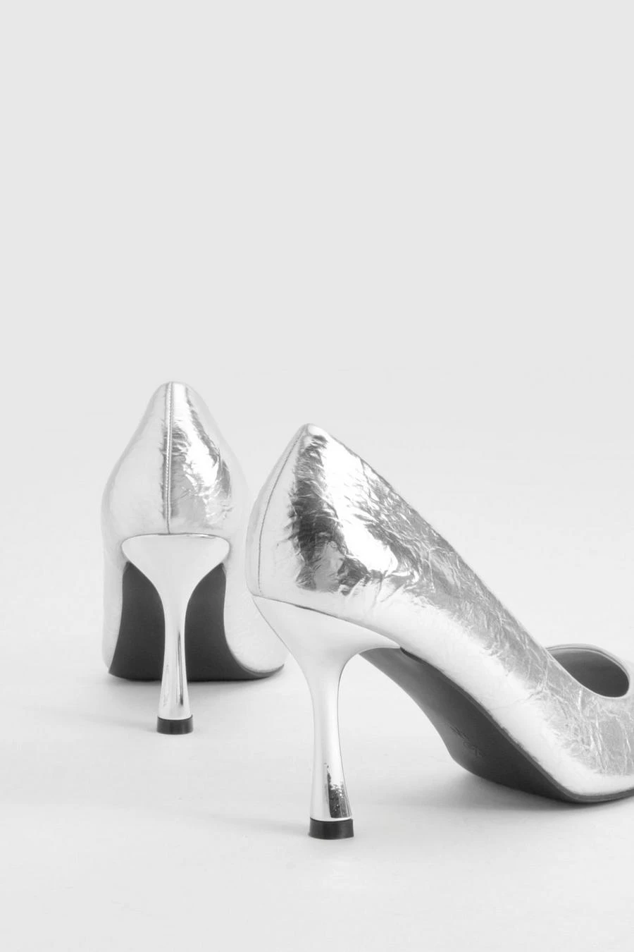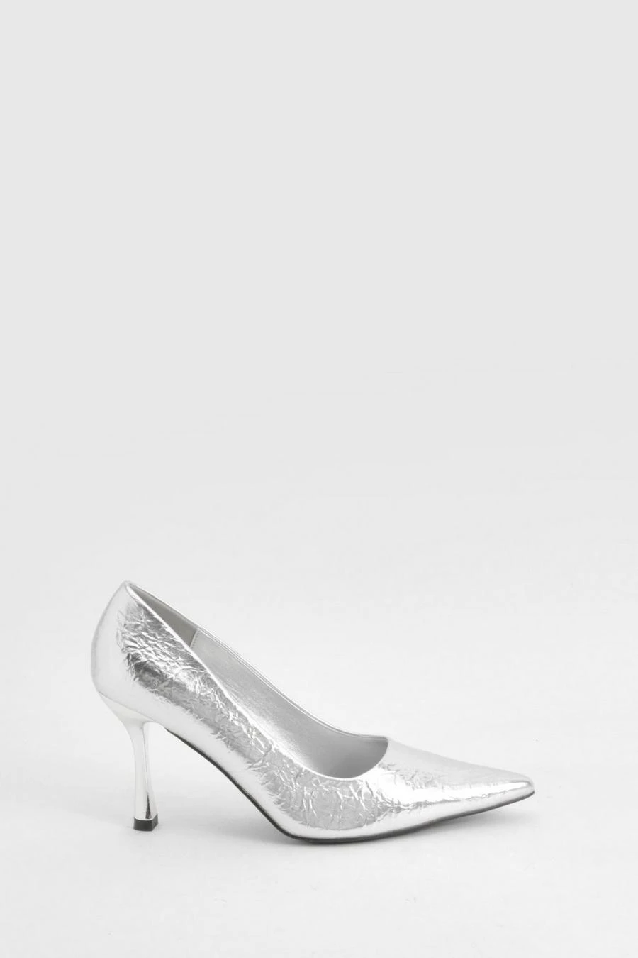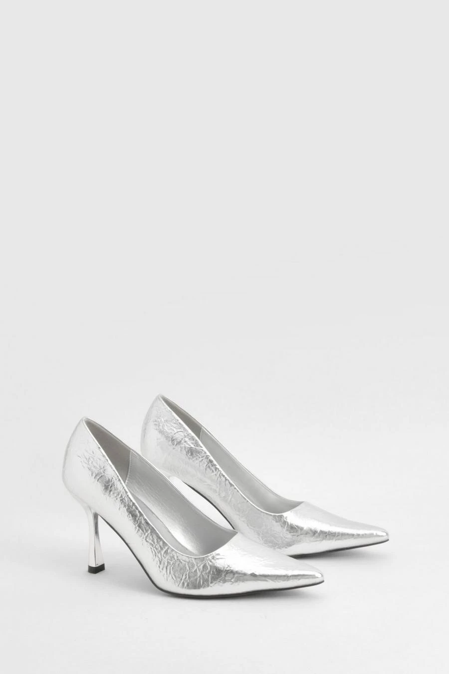 BOOHOO Wide Fit Metallic Textured Court Shoes