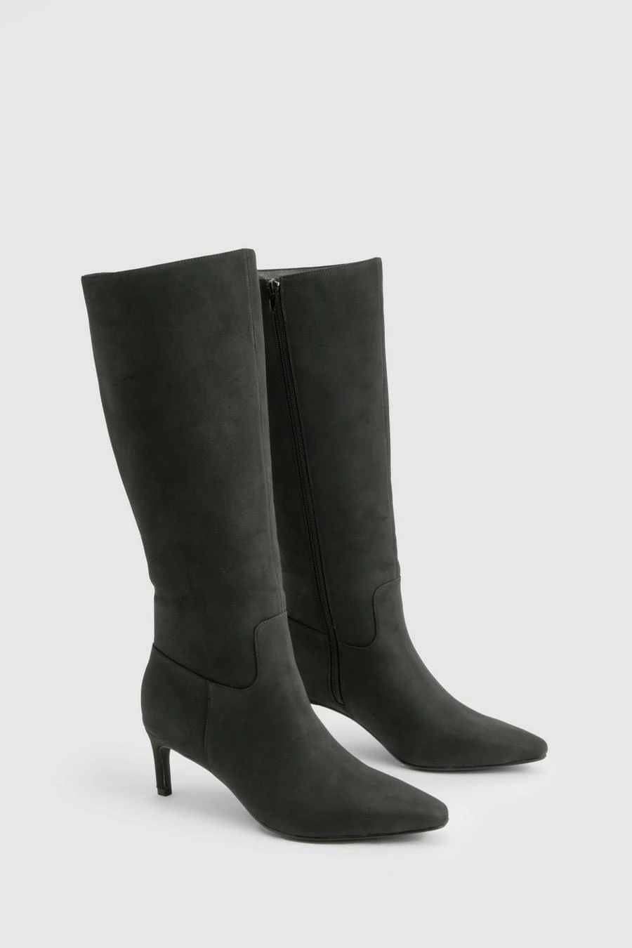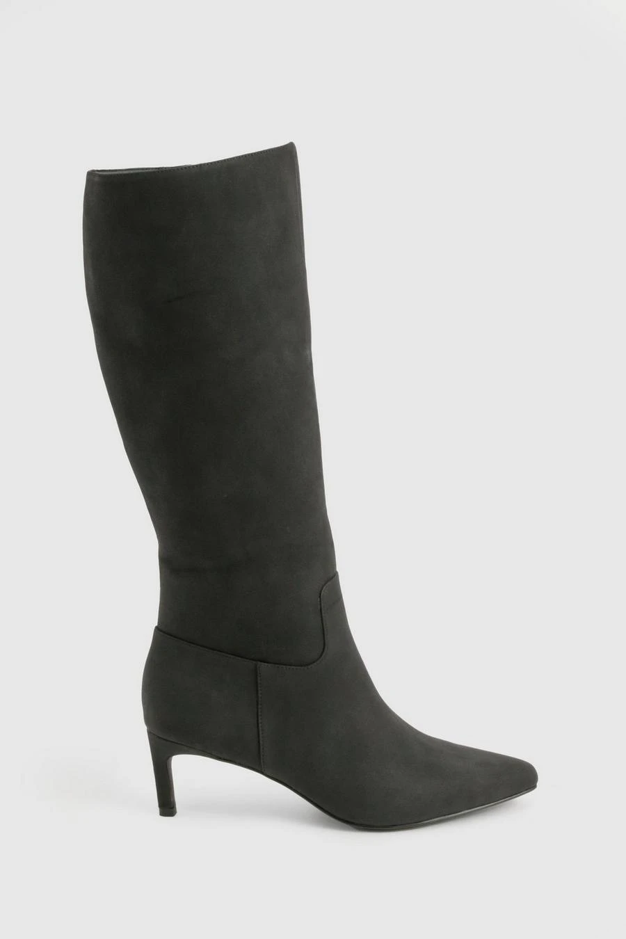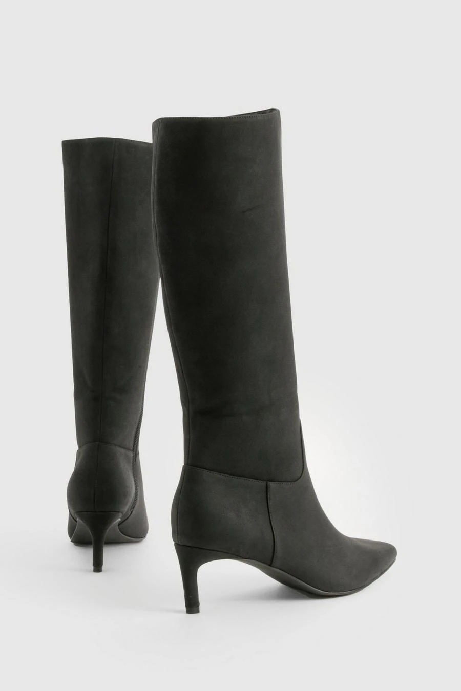 BOOHOO Wide Fit Nubuck Knee High Low Heeled Boots