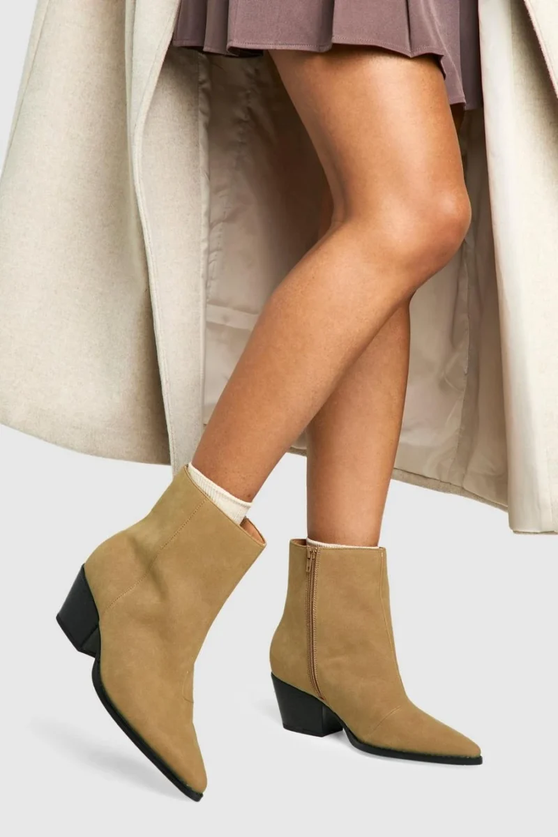 BOOHOO Wide Fit Nubuck Low Block Ankle Western Boots