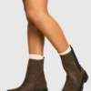 BOOHOO Wide Fit Nubuck Western Cowboy Boots