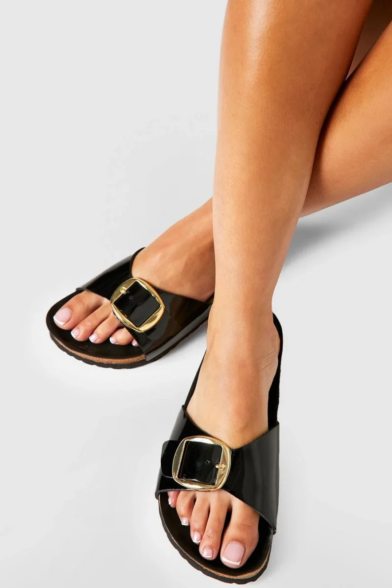 BOOHOO Wide Fit Oversized Buckle Patent Footbed Sliders