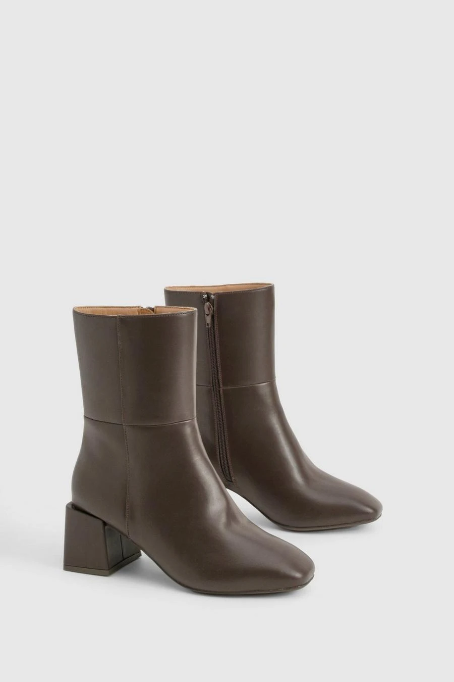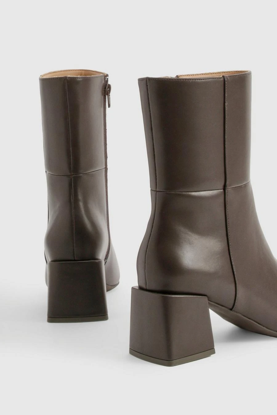 BOOHOO Wide Fit Panel Detail Block Calf Boots