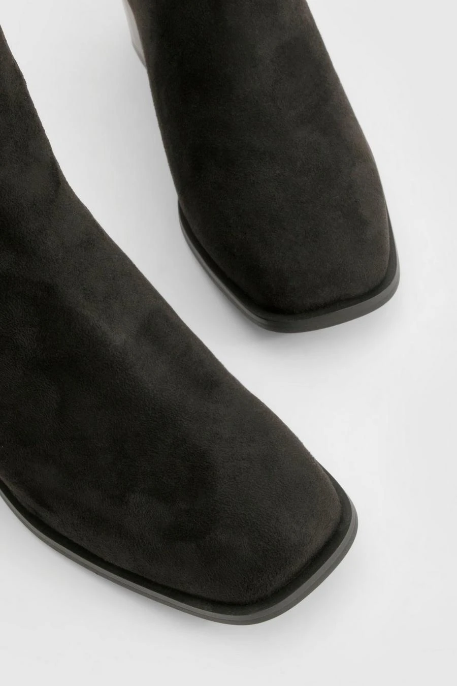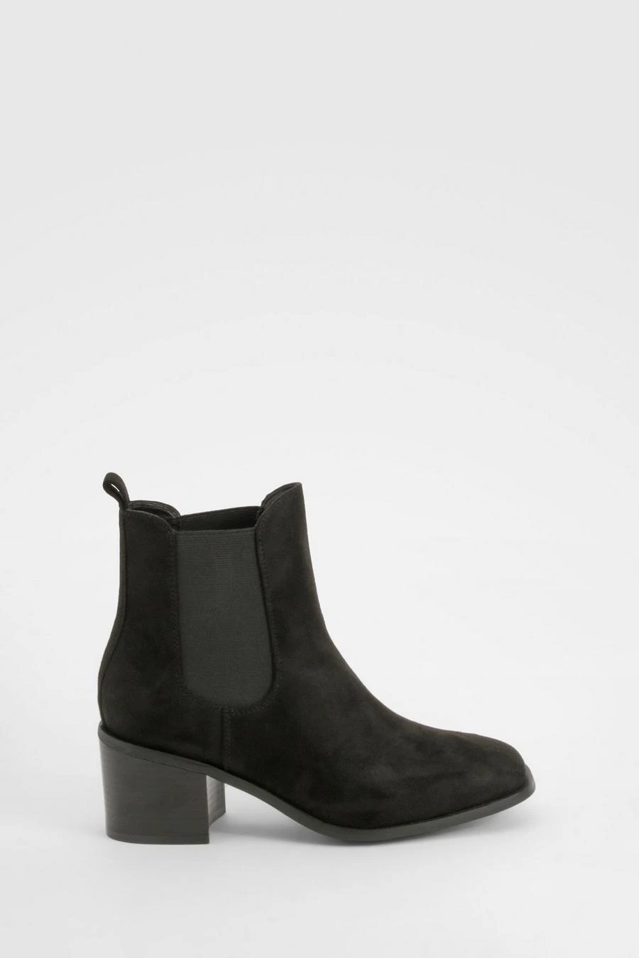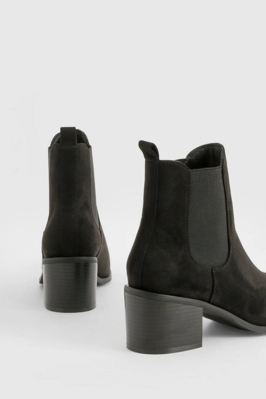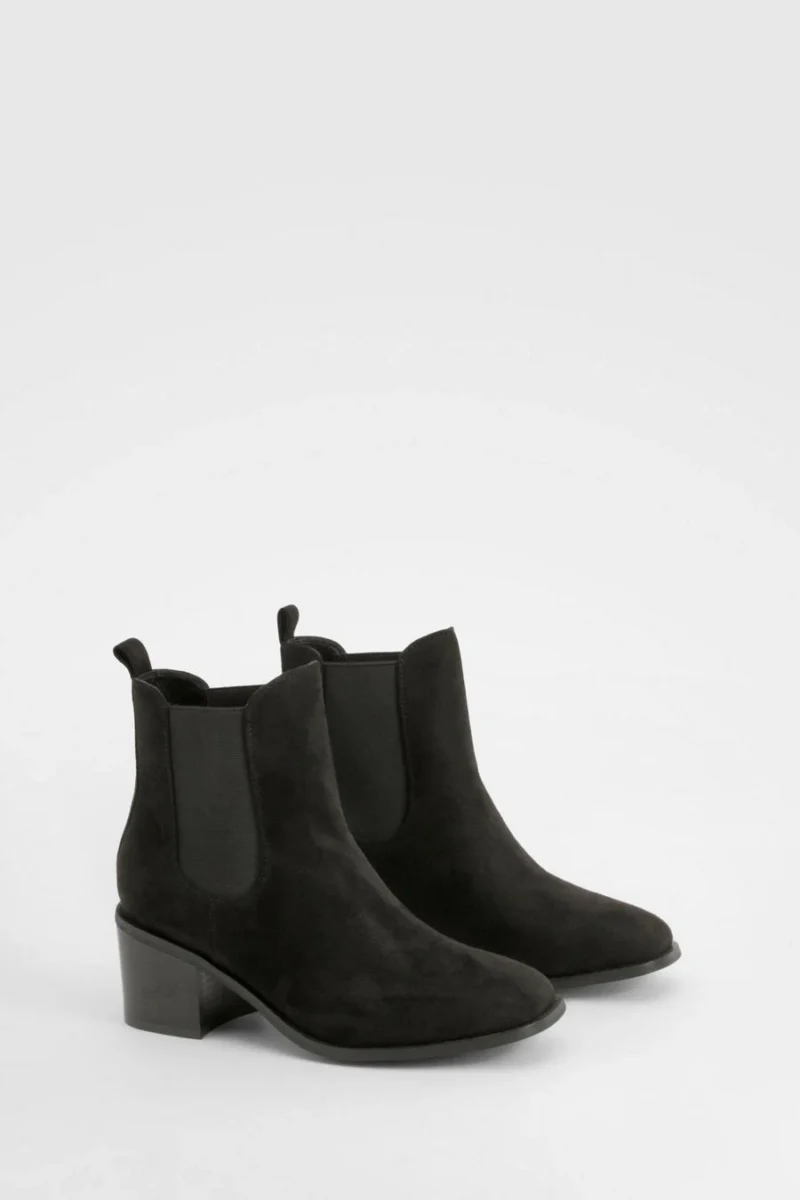 BOOHOO Wide Fit Panel Detail Low Block Heeled Shoe Boots