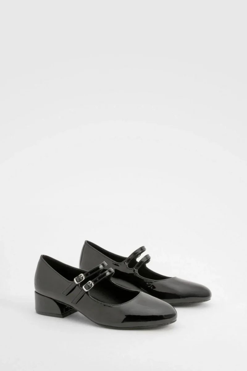 BOOHOO Wide Fit Patent Double Strap Mary Jane Ballets