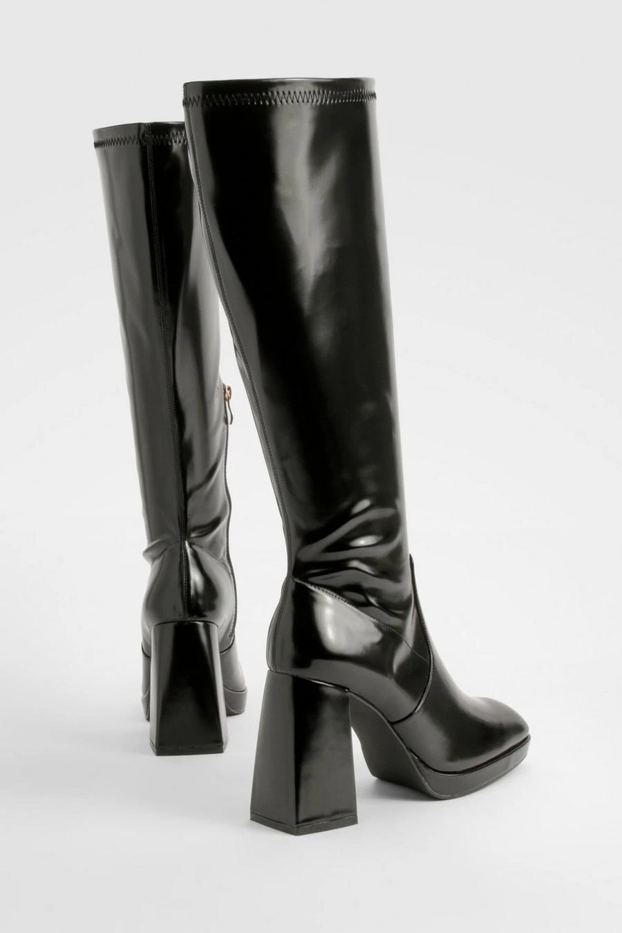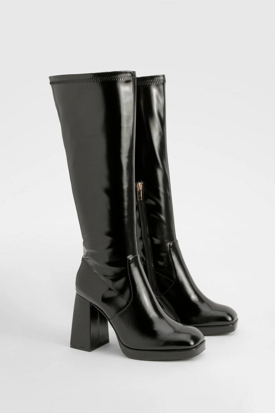 BOOHOO Wide Fit Platform Block Heel Knee High Boots