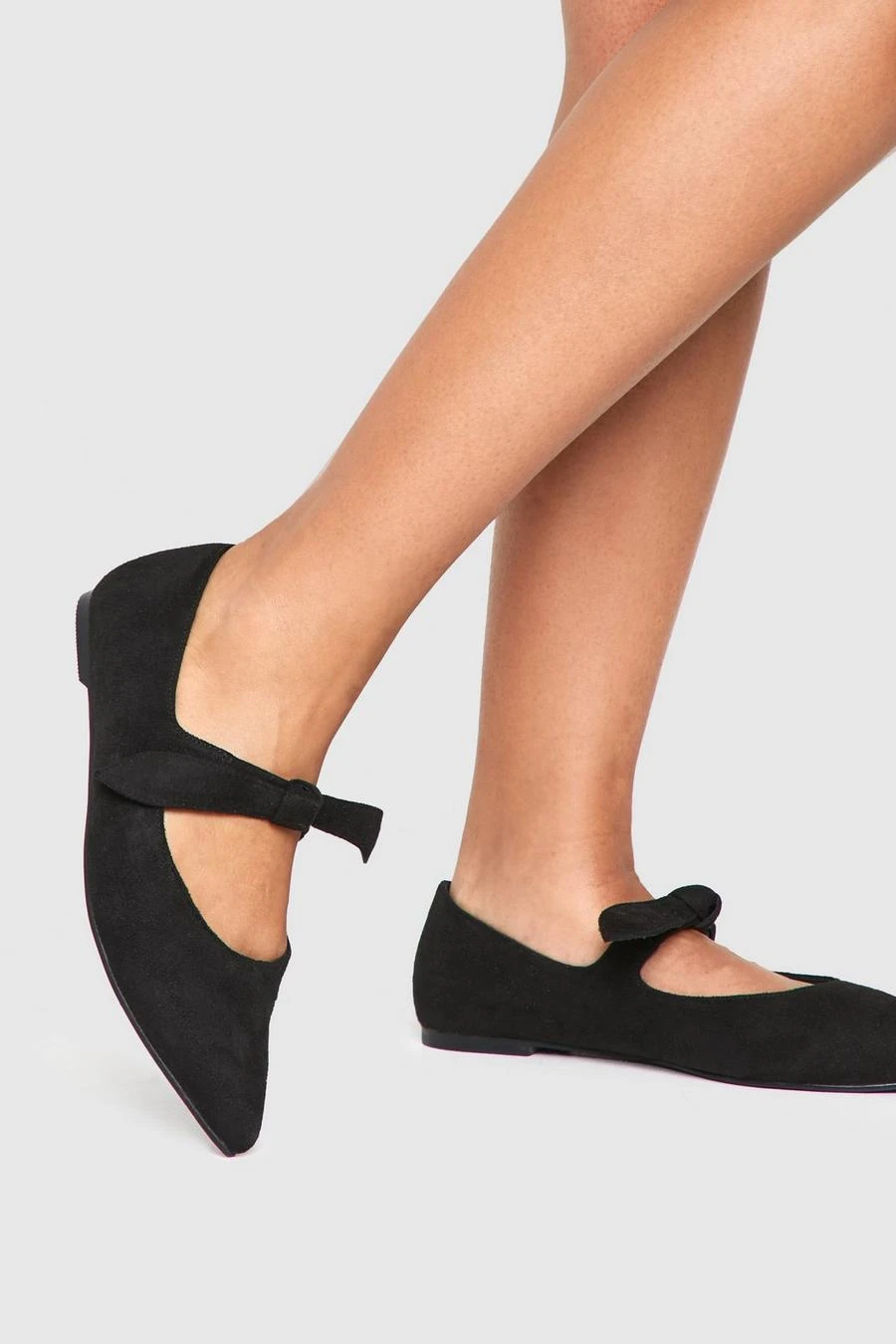 BOOHOO Wide Fit Pointed Bow Detail Ballet Flats