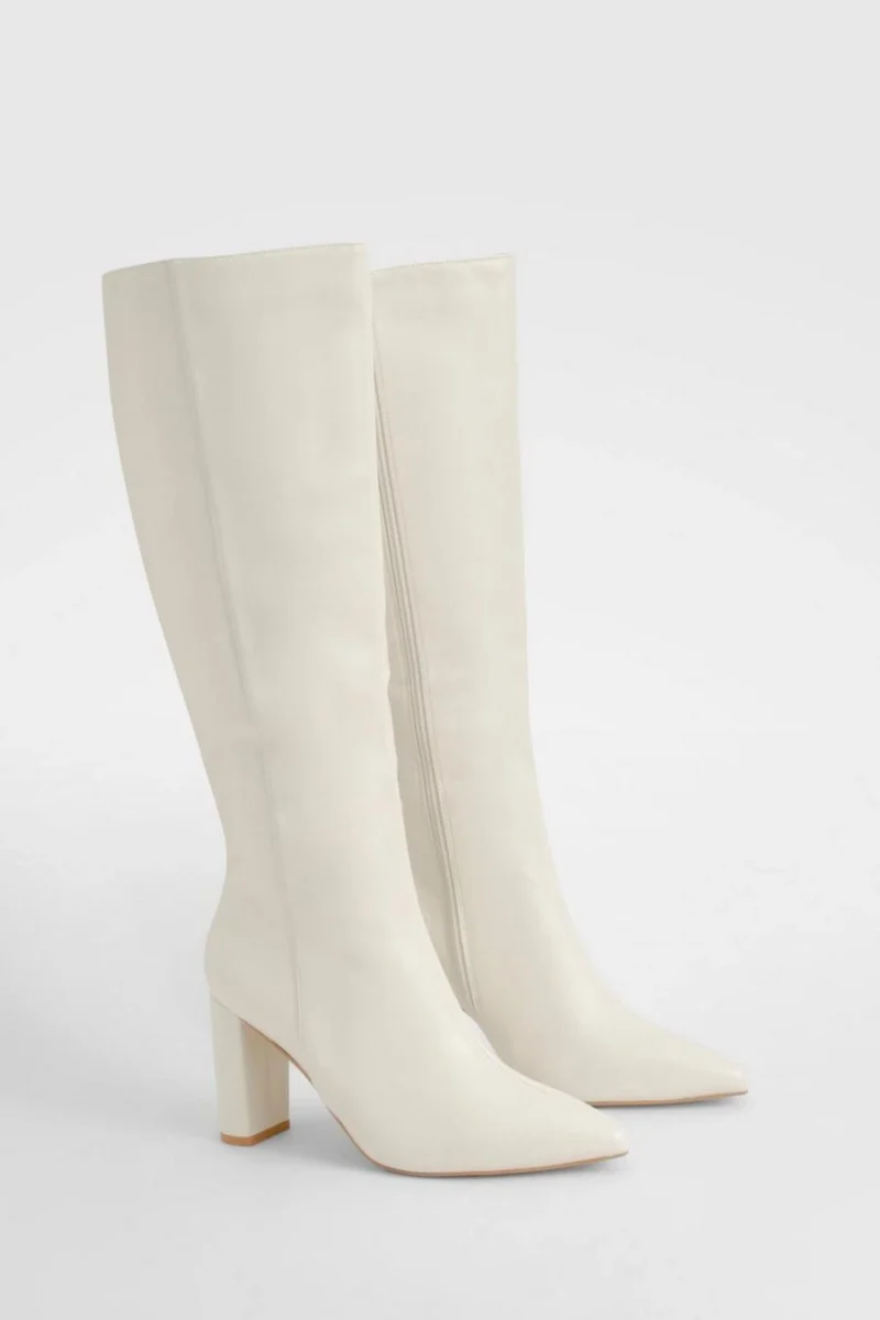 BOOHOO Wide Fit Pointed Knee High Heeled Boot