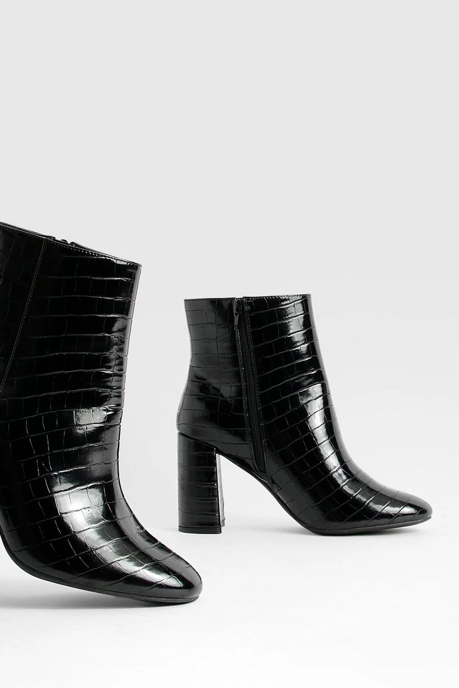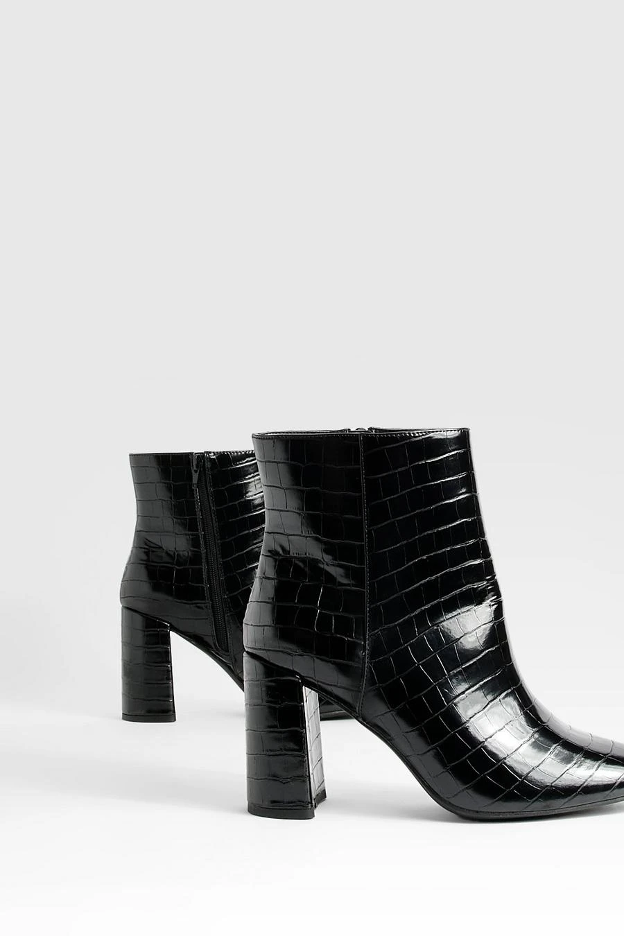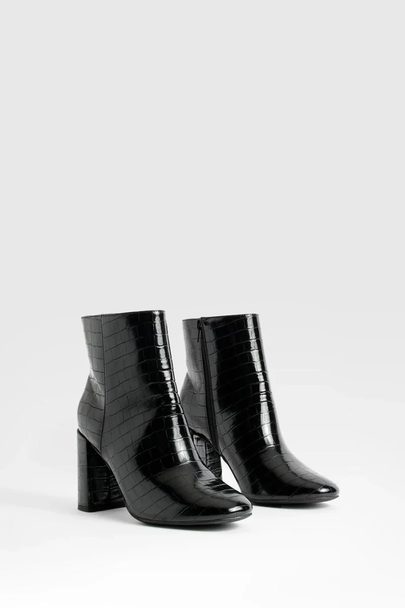 BOOHOO Wide Fit Round Toe Block Heel Croc Ankle Boots