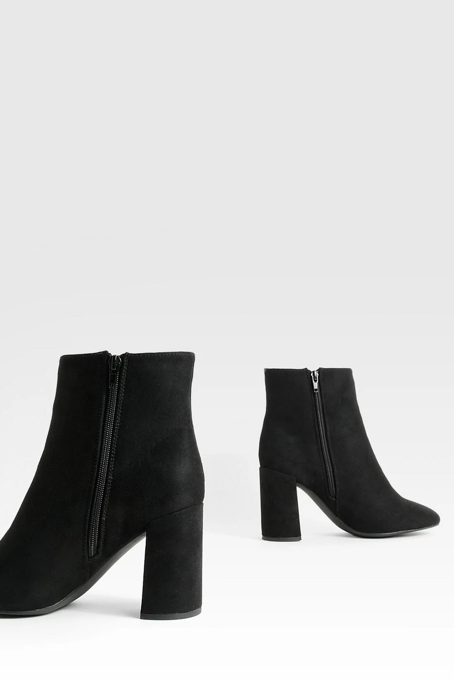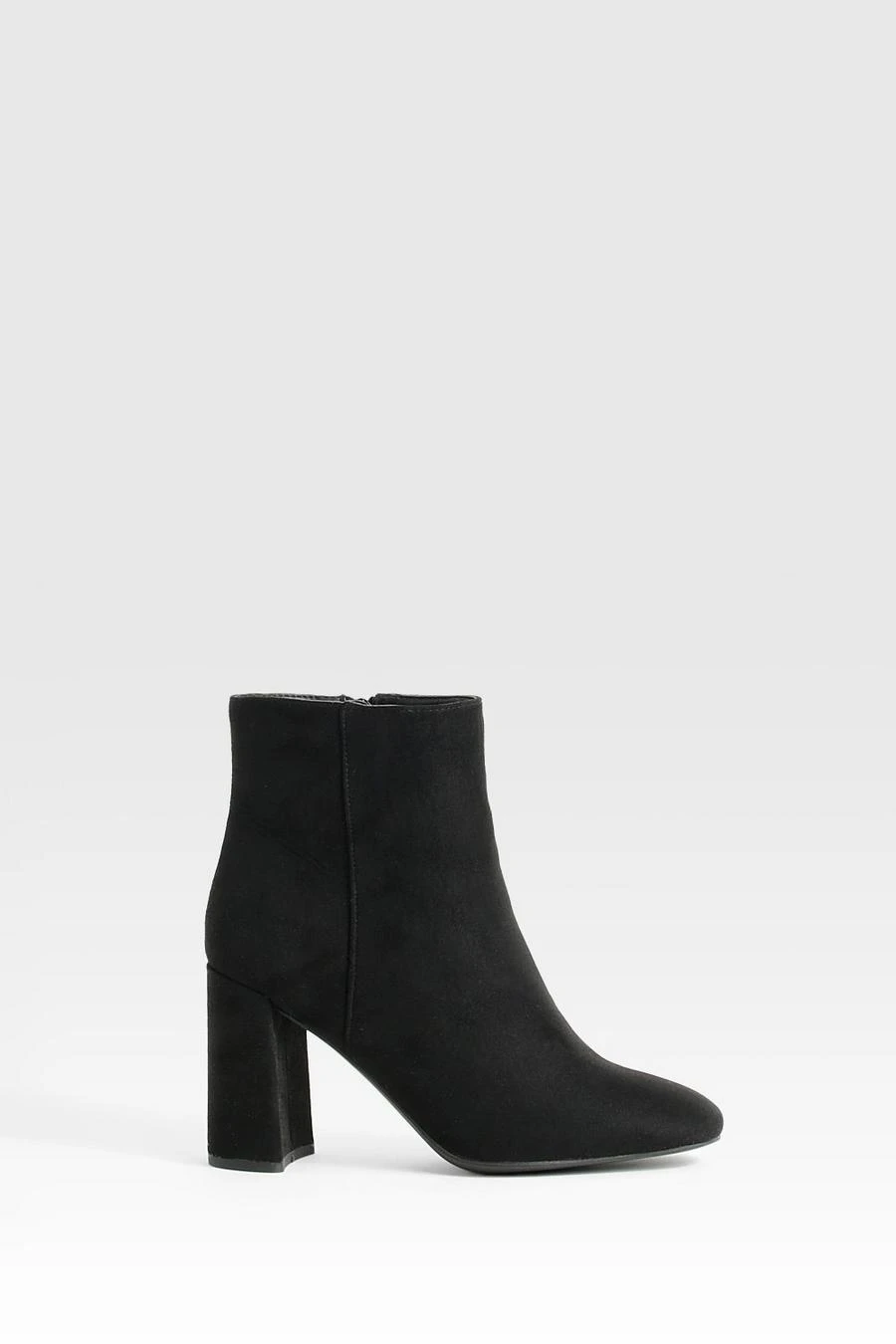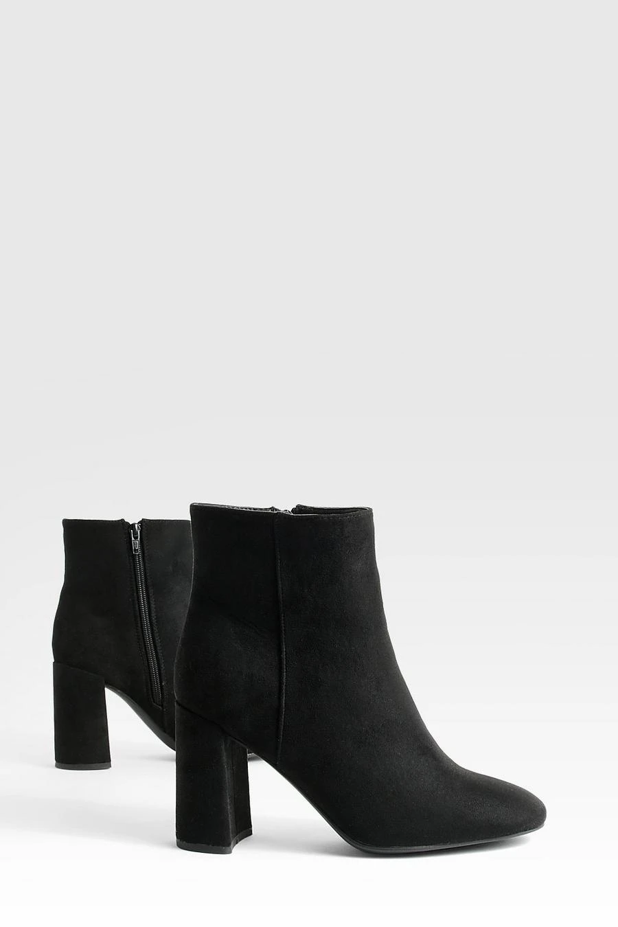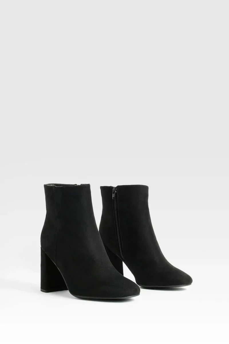 BOOHOO Wide Fit Round Toe Block Heel Faux Suede Ankle Boots
